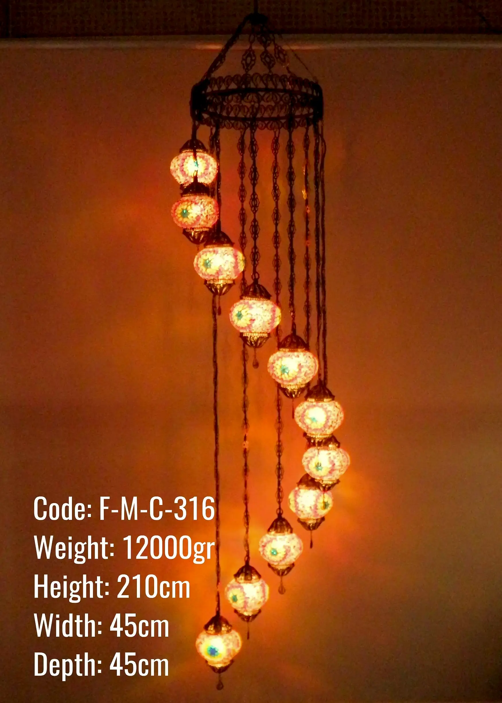 Mozaik No2 Cam Telkari 11li Helezon Set Avize – F-M-C-316