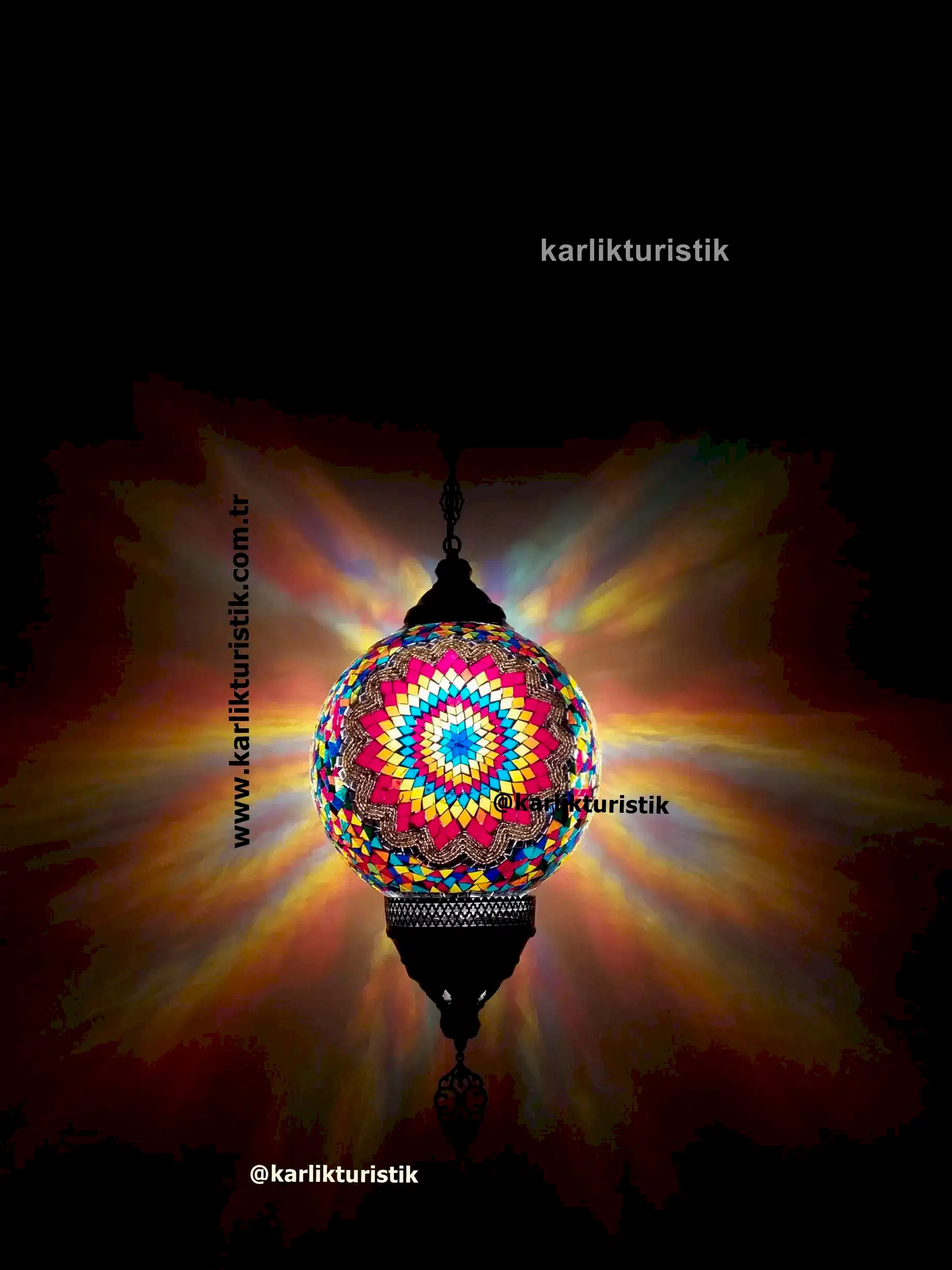 Mozaik Tekli Asılı Lamba – Karlikturistik’ten El Yapımı, Renkli, Otantik