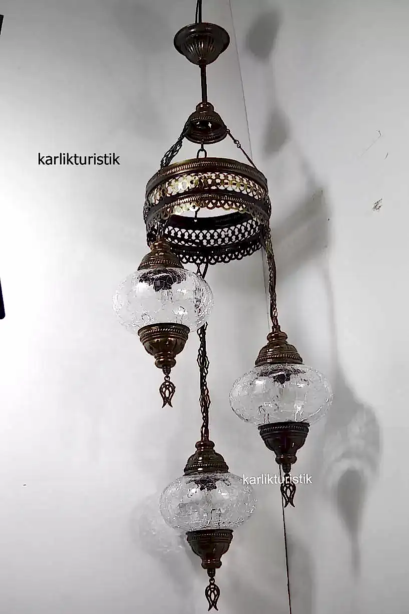 Osmanlı Lamba Avize 3 lü Sarkıt Dekoratif Aydınlatma Tavan Lambası Şefaf Otantik I-S-C-5301
