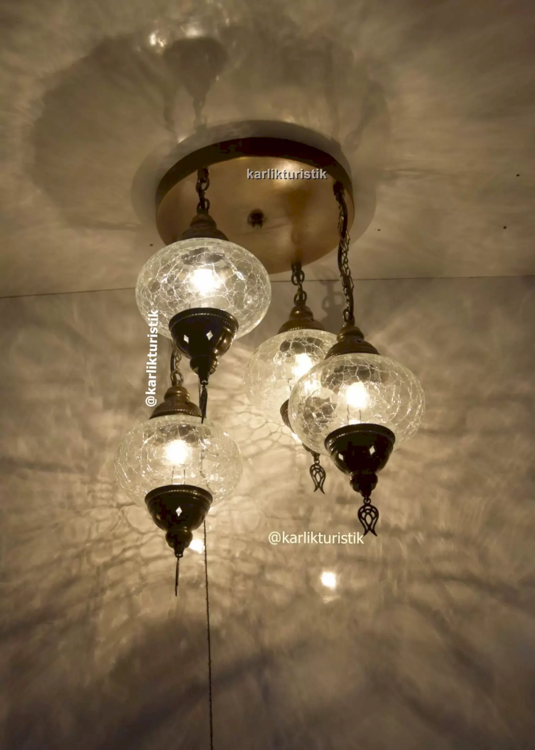 Avize Lamba Tavan Armatürü 4 osmanlı şefaf çatlak camlı Dekoratif tarz Ev-Otel Avizesi, türk yapımı otantik aydınlatma