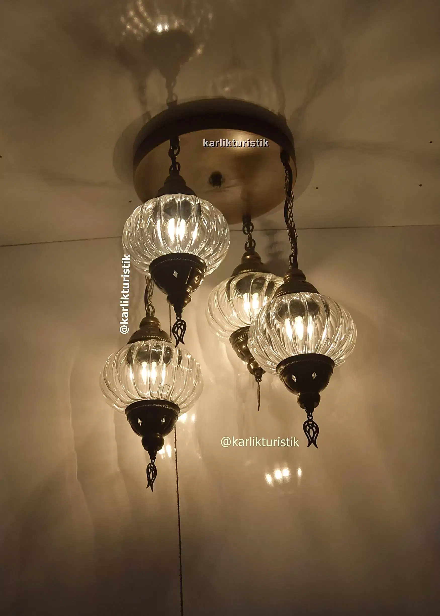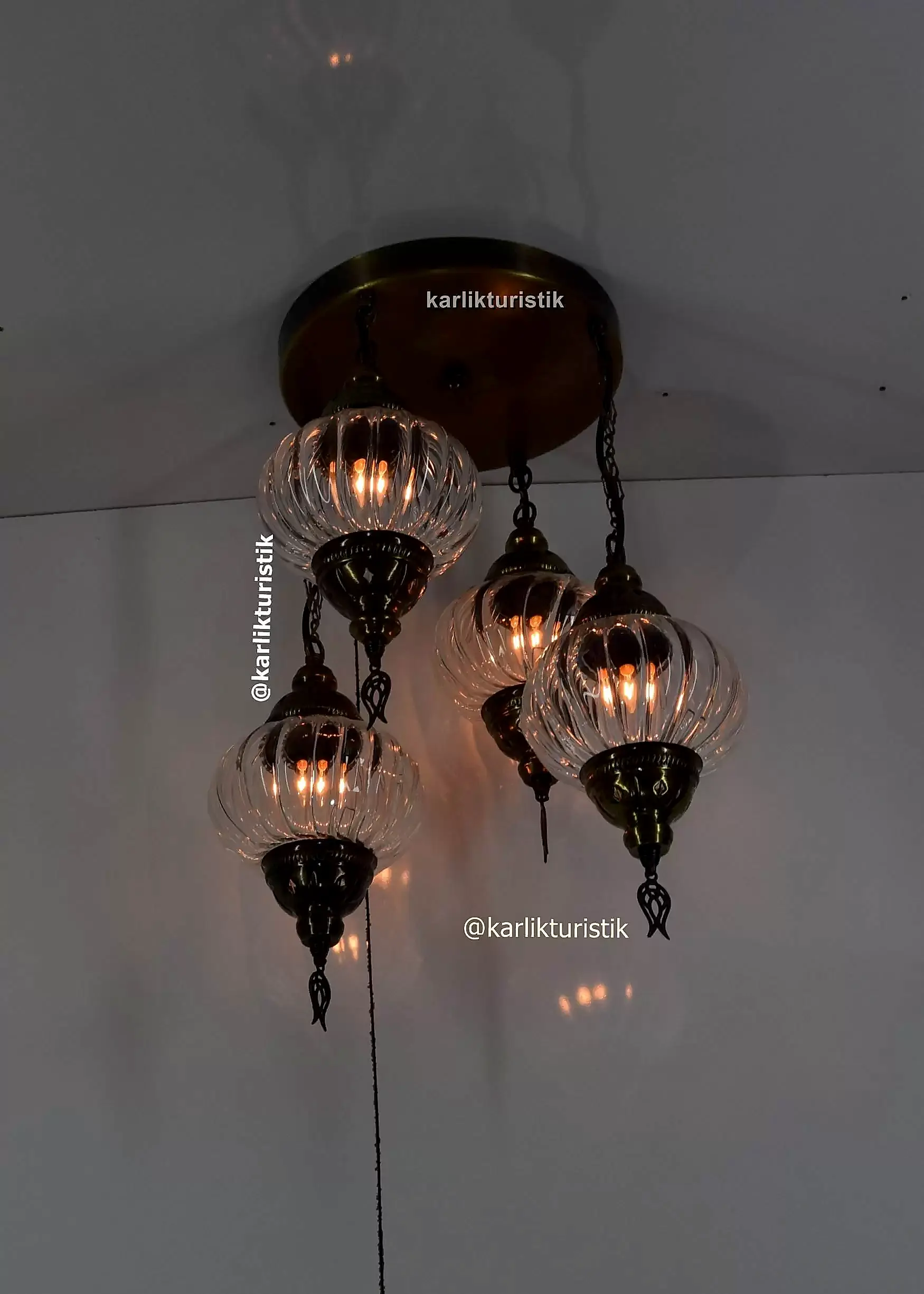 Avize Lamba Tavan Armatürü 4 Pyreks camlı lazerli Dekoratif tarz Ev-Otel Avizesi, türk yapımı otantik aydınlatma
