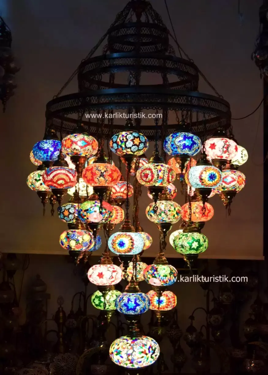Büyük Avize 43 küre,Türk Mozaik Avize,El Yapımı Mozaik Asılı Lamba,