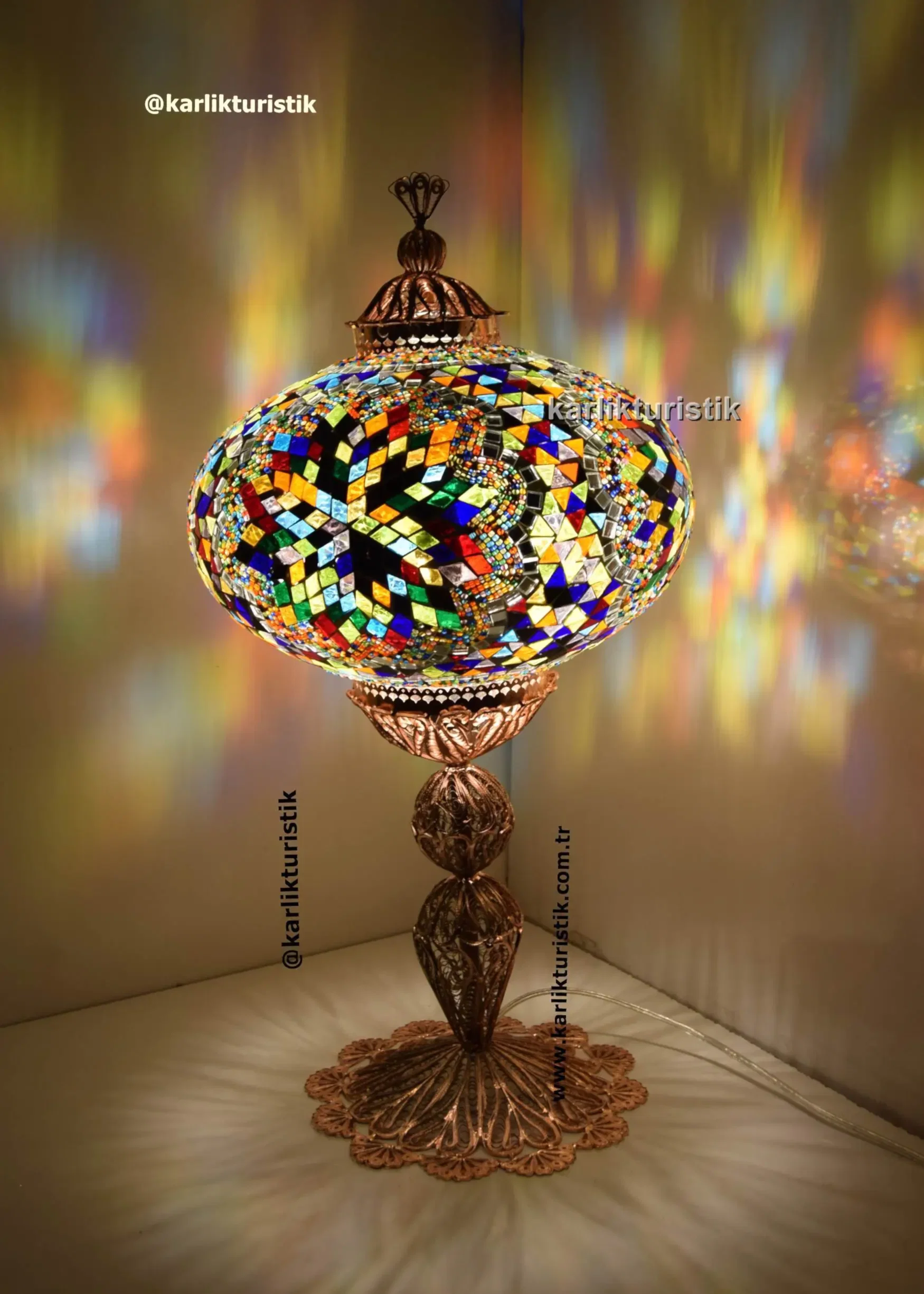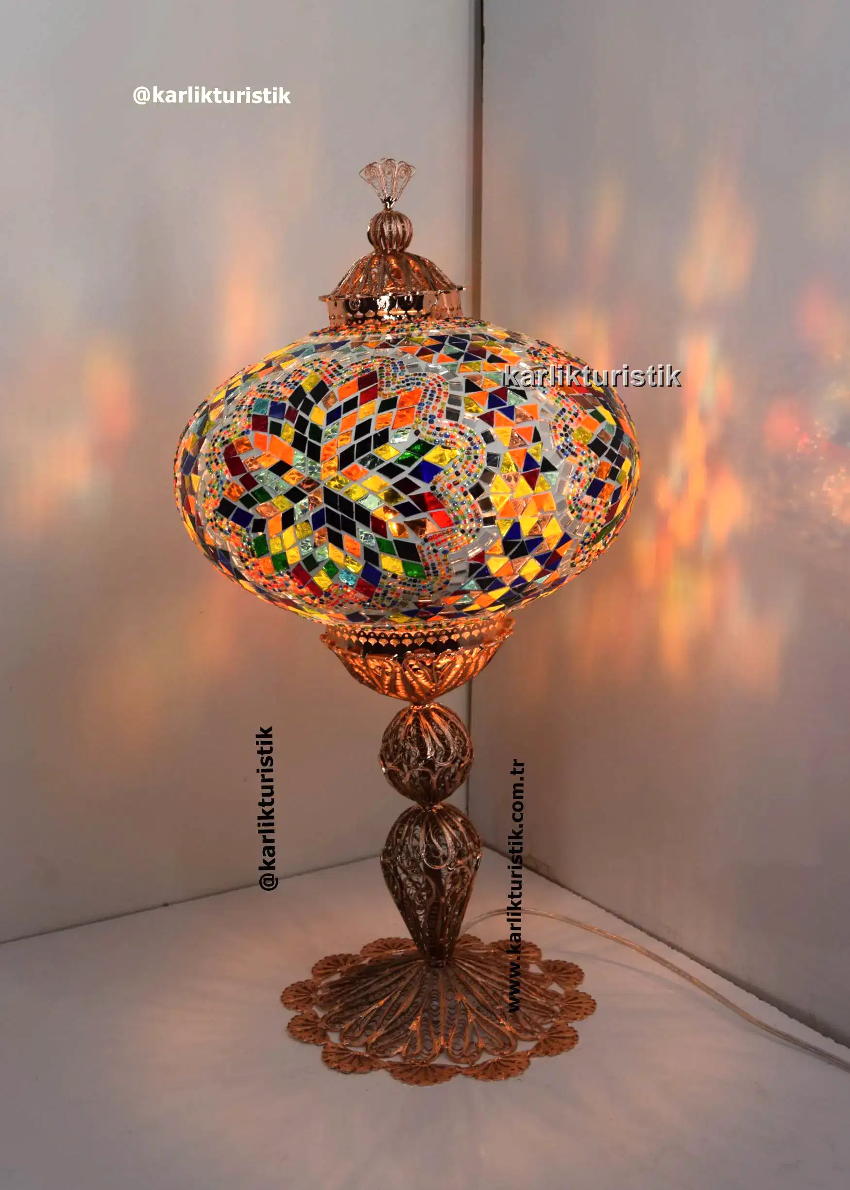 “Büyük Boy Mozaik Masa Lambası – Bakır Kaplama Bakır Telkari Dekoratif Türk Lambası El Yapımı | Türkiye Üretimi” için yorum yapan ilk kişi siz olun