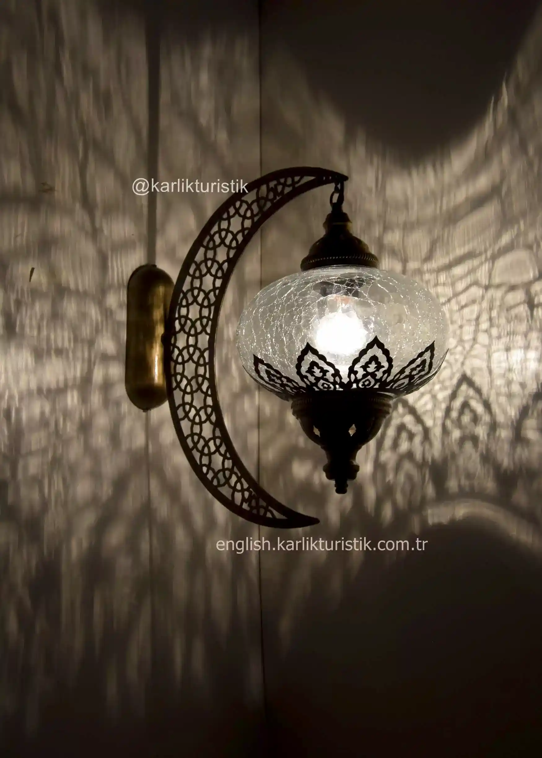Büyük Boy Osmanlı Aplik Lamba Hilal Dekoratif Duvar Otantik Aplik Yarım Ay Lazerli