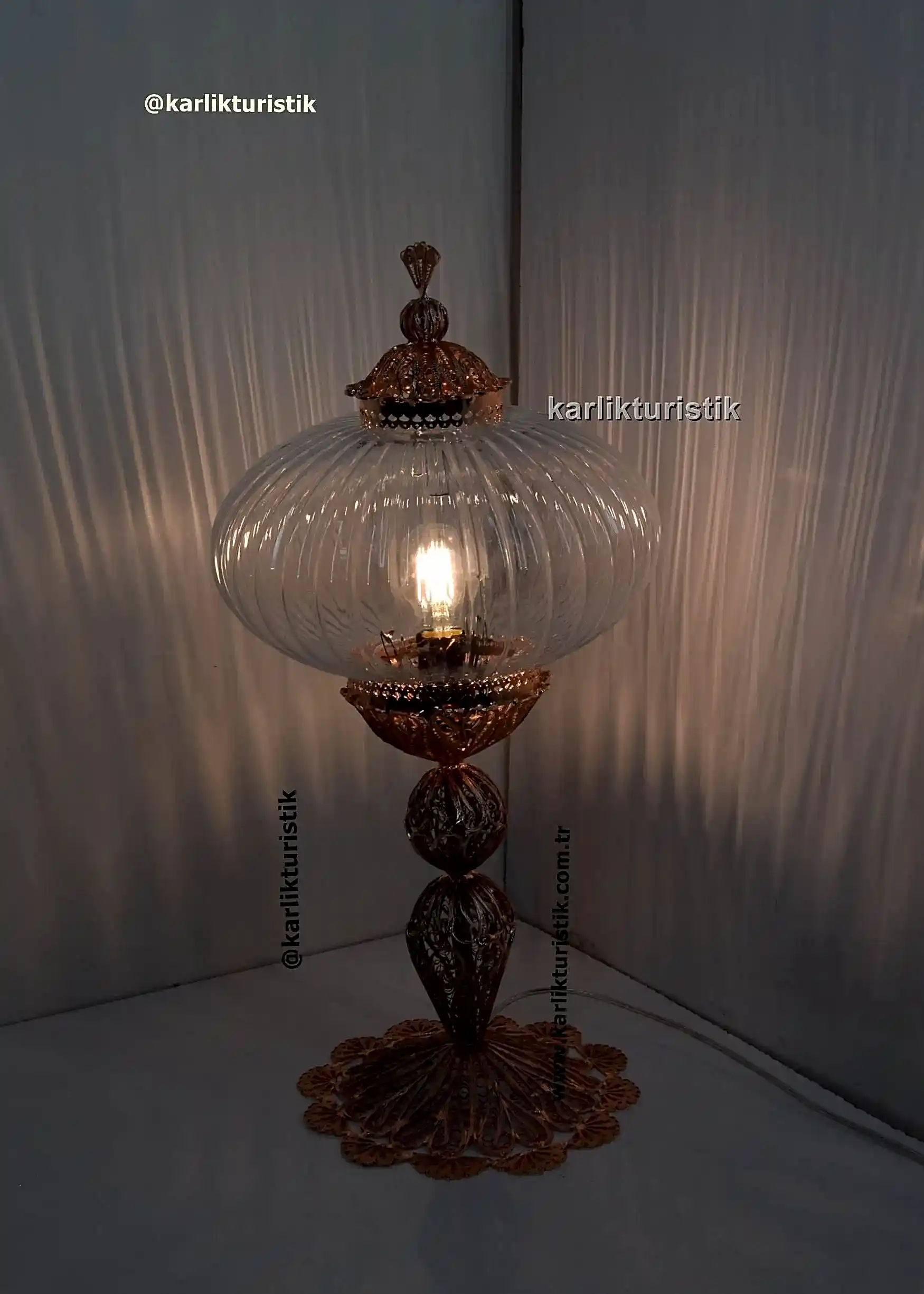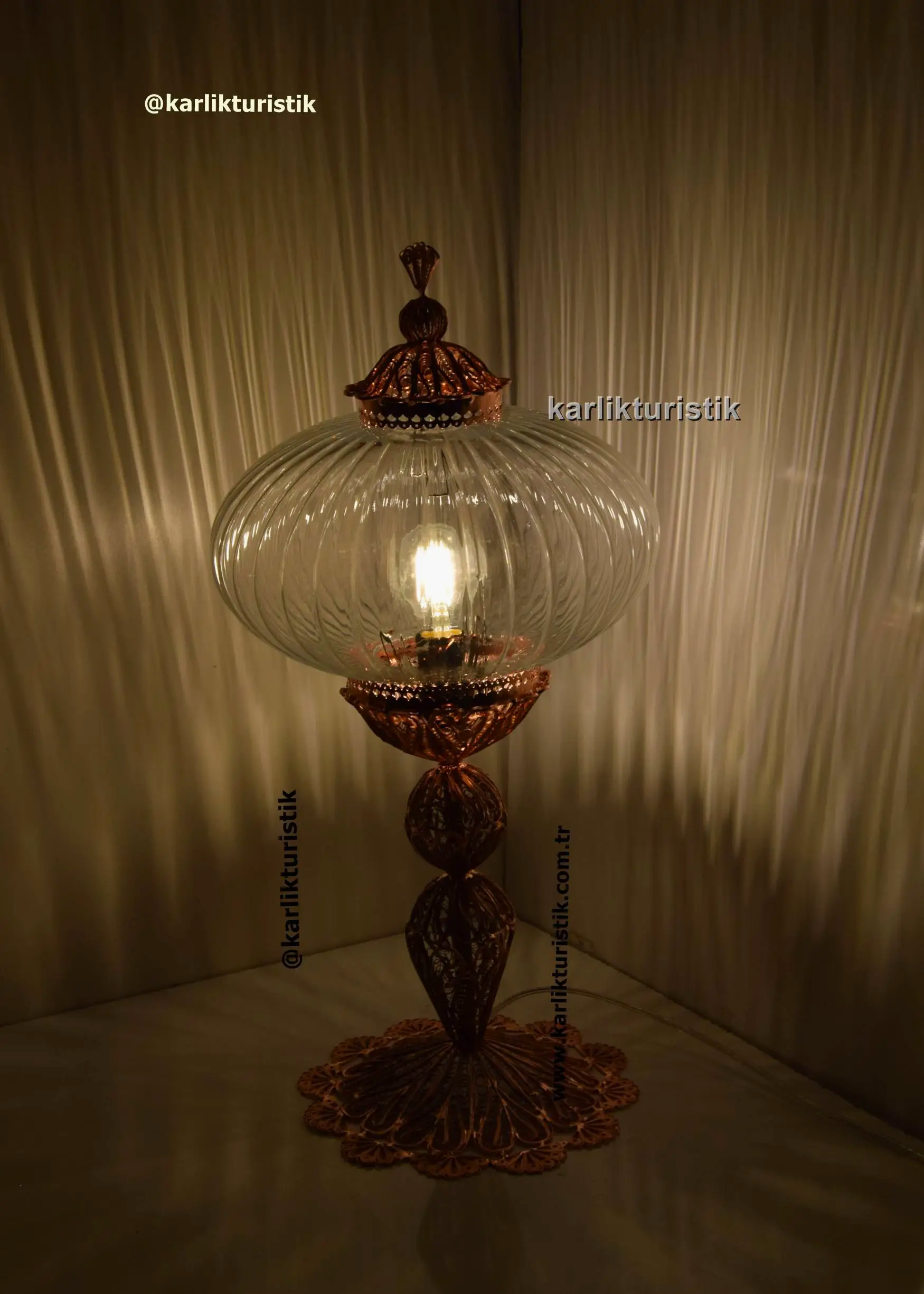 Büyük Boy Şefaf Masa Lambası – Bakır Kaplama Bakır Telkari Dekoratif Türk Lambası El Yapımı | Türkiye Üretimi
