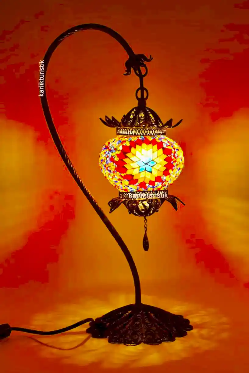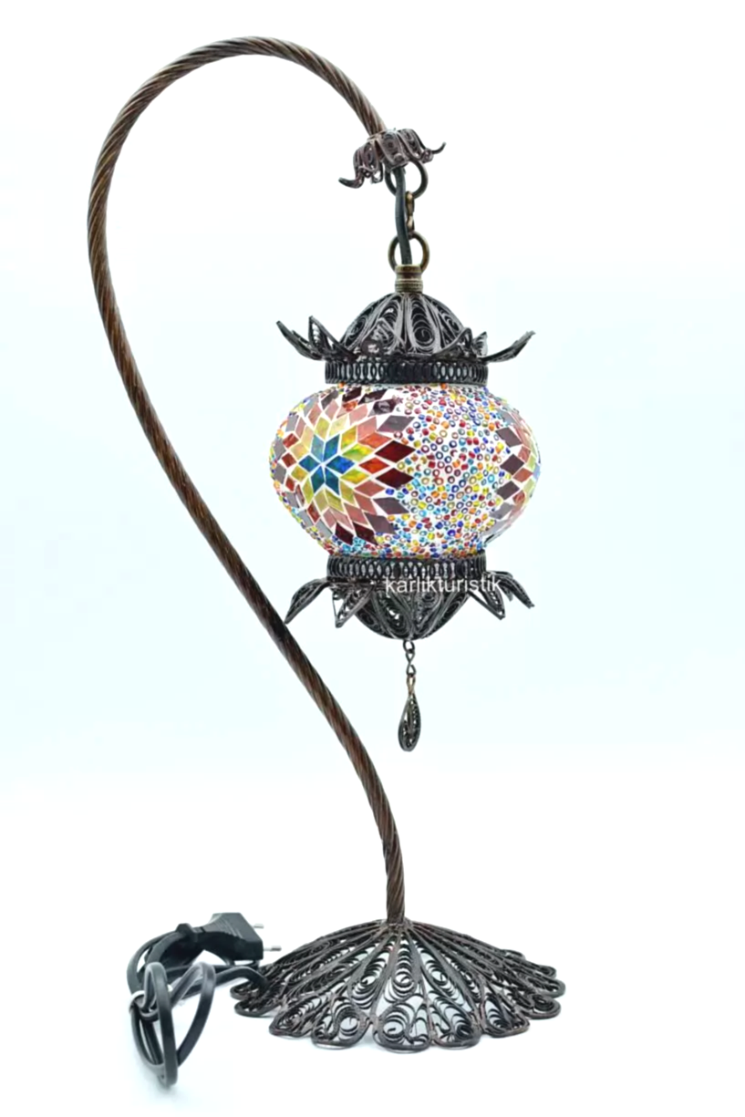 Deveboynu No2 Mozaik Taçlı Telkari Oltali Masa Lambasi – F-T-209