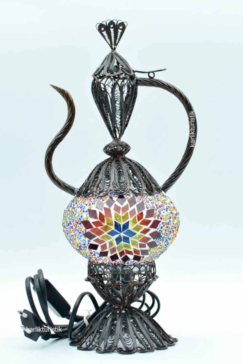 EWER LAMP -Turkish Mosaic Table Lamp Ewer -Ottoman Ewer lamp-Turkish Lamp Handmade Filigree -Mosaic Table Lamp Copper -TURKİSH HANDMADE LAMP-TURKİSH MOSAİC PATTERN TABLE LAMP