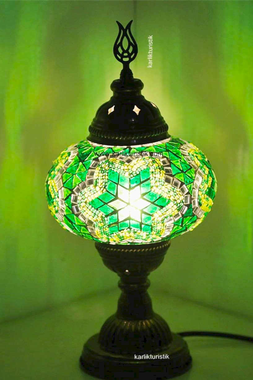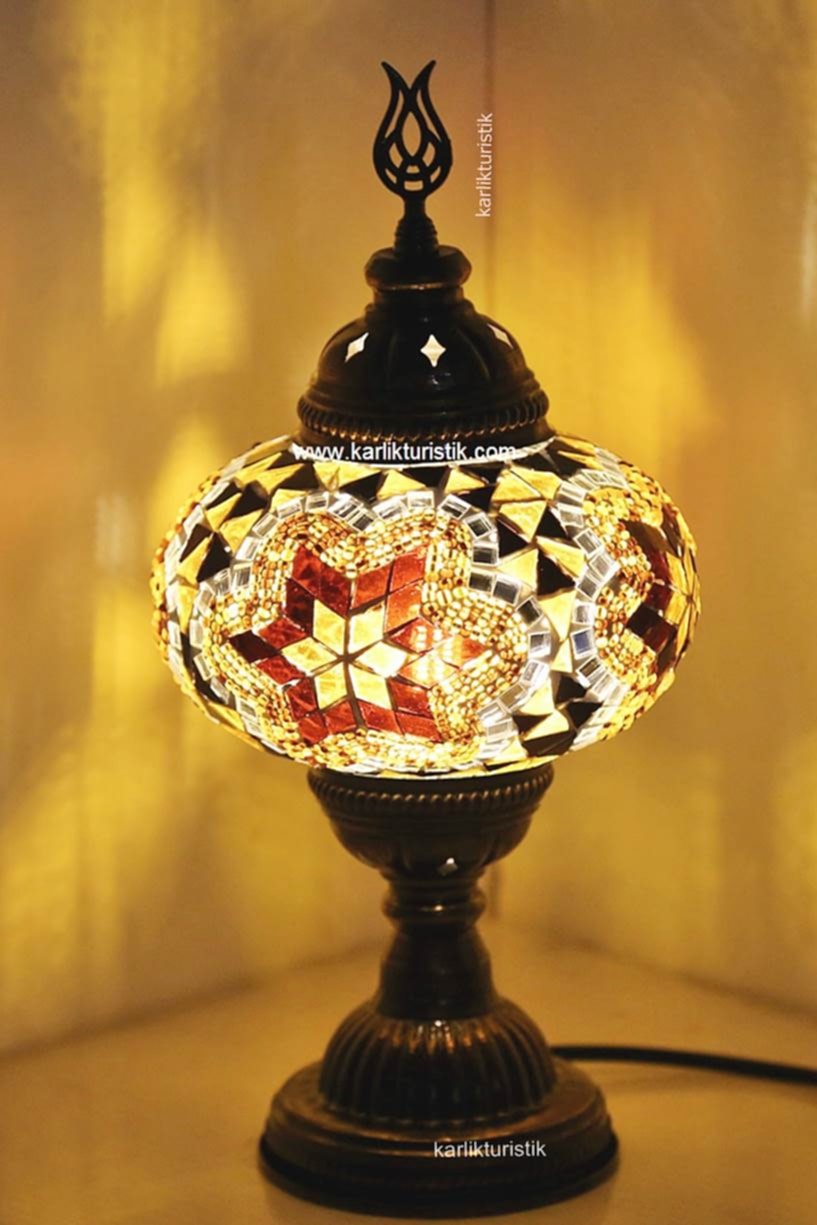 Mosaic Table Lamp Metal Spinning CODE: I-S-T 5002 The product is in CE standard and is used with E14 bulbs. It works with 220v household electricity. Product height is 24 cm / Width and Depth is 16 cm. The Bulb will be sent with the product free of charge. All the glasses were cut by hand and carefully arranged. Plaster was placed between the glasses to make it traditional and durable. All the parts are Turkish made and the products are checked one by one before they are sent. Once you have the product, all you have to do is simply take it out of the box, plug it in, and enjoy this uniquely colored lamp.