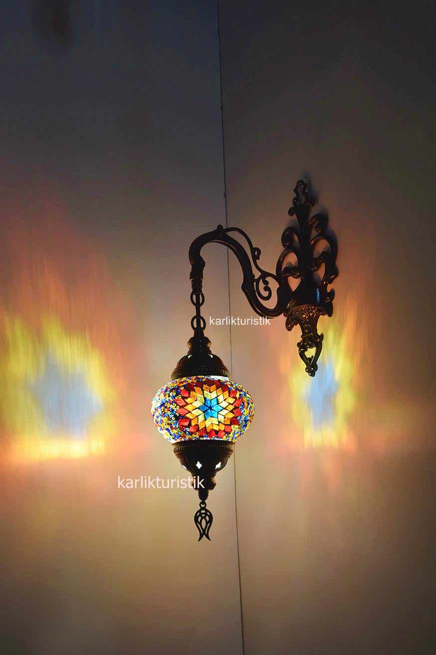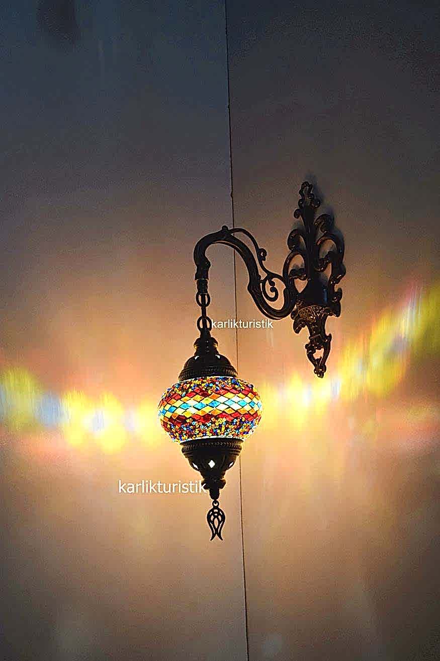 Mosaic Glass Plaster Single Wall Sconce Downward Direction I-S-W 5400 .The product’s application consists of metal plastering. Extra varnish is added to the apparatus, making it longer lasting and brighter. Products are tested one by one before they are sent. The cables used are of high quality CE certified. There is a Ce certified socket on the product. The product is completely Turkish.