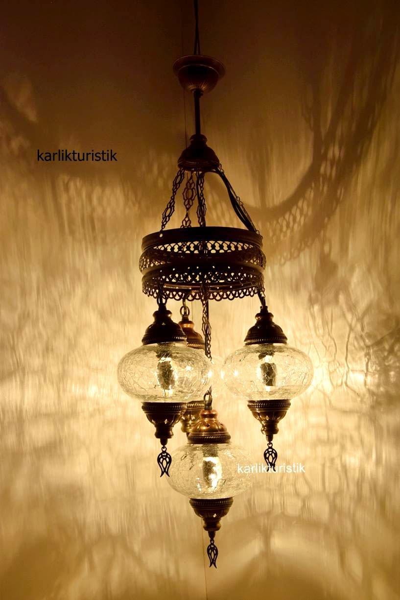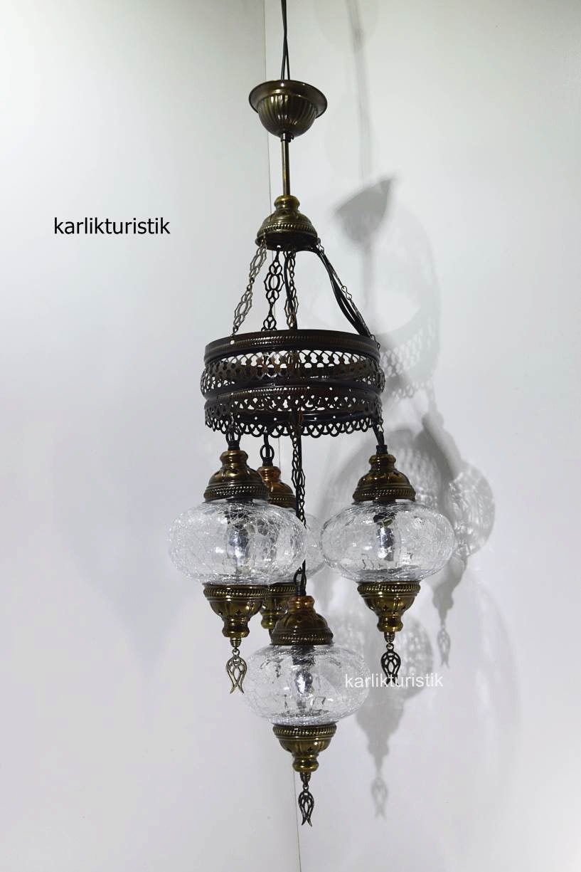 Traditioanal Chandelier,Handmade Turkish Lamp from Turkey 4 Cracked Glass,Home lights ,Decor Lamps,Turksih Chandelier 4 Globe I-S-C-5322