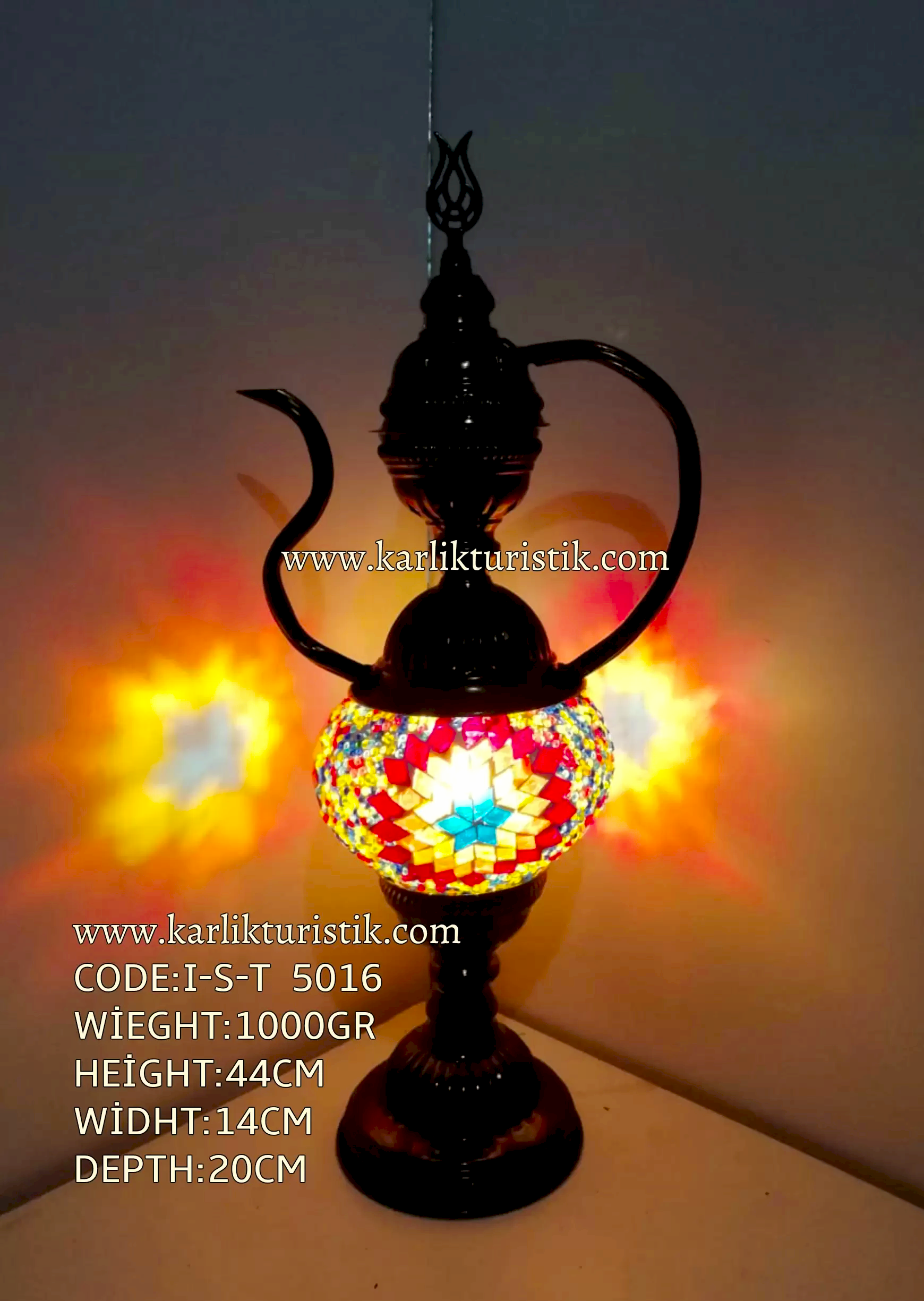 - Mozaik Metal İbrik Şeklinde Demir El İşi Mozaik Masa Lambası Abajur – I-S-T-5016 .Ürünün apratı metal sıvamadan oluşmaktadır.Aparatına ekstra vernik atılarak ,daha uzun ömürlü ve daha parlak olmakdadır. Ürünler yollanmadan tektek denenmektedir. Ürün tamamen türk olmalıdır. Ürün genişliği 20cm olup.Yüksekliği 40cmdir.Kulanılan ayak çapı 13cm dir. camın kısmı orijinal camdır.Bu üründe kullanılan camın çapı 13cm dir.Camlar solma yapmaz. Camlar geleneksel olan alçı kullanılarak yaplmıştır. Alçı kullanıldığı içinde cam parçaları düşmez ve cama sıkıca tutunur. Ürün ce standartlarında olup e14 küçük ampülle kullanılabilir. Kırılmıycak vaziyette tektek paketlemekdeyiz.
