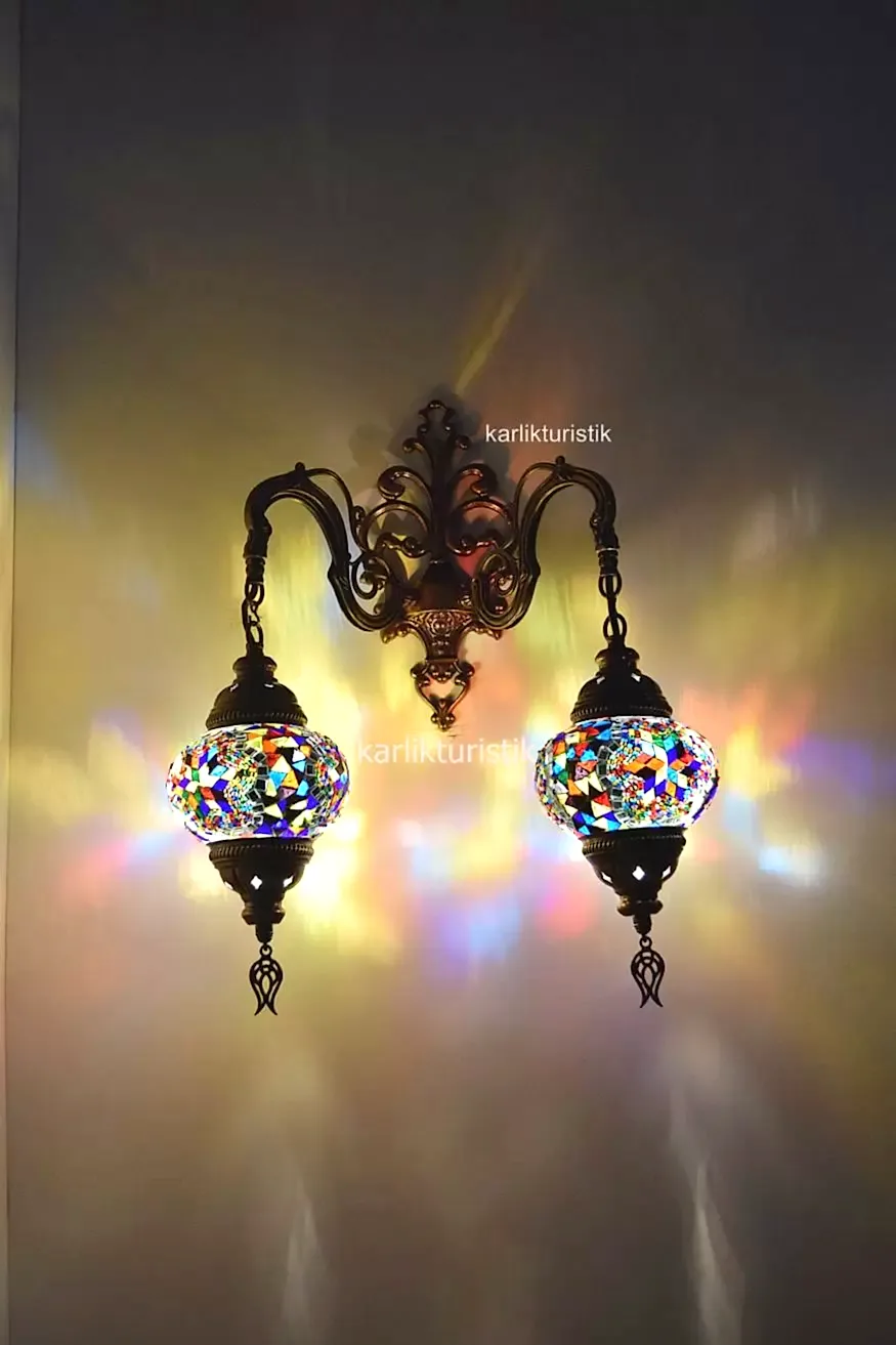 Mozaik Aplik ,Çiftli Aşağı Yönlü Dekoratif Duvar Lambası,Otantik Lamba,Mozaik Lamba I-S-W-5409