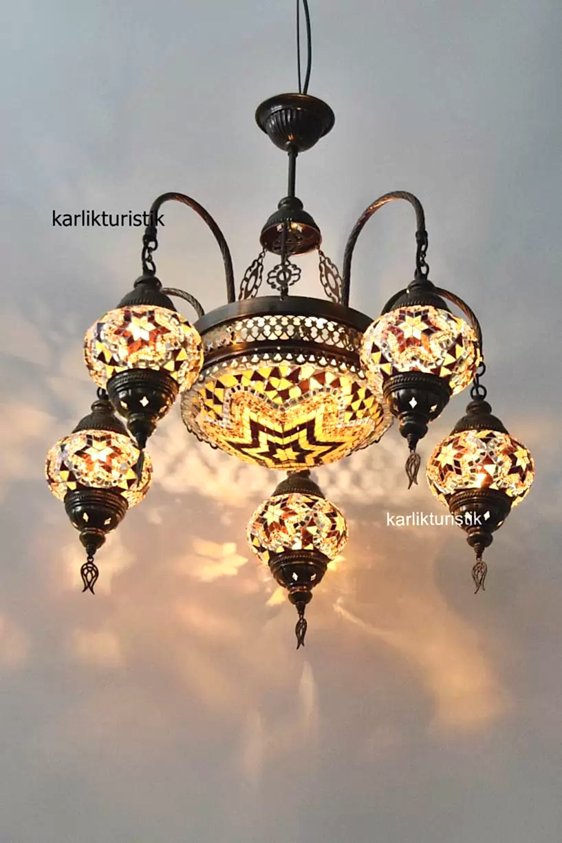 “Mozaik Avize 5 Kollu Sarkıt Rustik Tavan Lambası Renkli Osmanlı Avize I-S-C-5330” için yorum yapan ilk kişi siz olun
