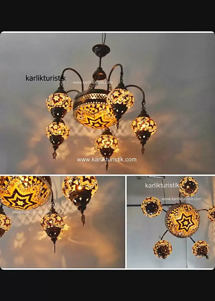 Ürünün apratı metal sıvamadan oluşmaktadır.Aparatına extra vernik atılarak ,daha uzun ömürlü ve daha parlak olmakdadır. Ürünler yollanmadan tektek denenmektedir. Kullanılan kablolar kaliteli Ce sertifikalıdır. Ürün üzerinde Ce sertikalı duy bulunmaktadır. Ürün tamamen türk malıdır. Ürün genişliği yaklaşık 65cm ,yüksekliği yaklaşık 70cm ve ağırlığıda 7 kg gelmektedir..Güvenle kullanabileceğiniz bir üründür. Ürünün cam kısmı orijinal camdır.Bu üründe kullanılan her bir camın çapı 13cm dir.Ortasısında 25 cm yuvarlak mozaik cam bulunmakdadır.Camlar solma yapmaz. Camlar geleneksel olan alçı kullanılarak yapılmıştır. Alçı kullanıldığı içinde cam parçaları düşmez ve cama sıkıca tutunur. Ürün CE standartlarında olup e14 küçük ampülle kullanılabilir.Ürün kuruluma hazır şekilde demonte edilmiştir.Özenle paketlenmiş camları paketinden çıkarıp aparatlarına taktıktan sonra güvenle kulalanabilirsiniz..