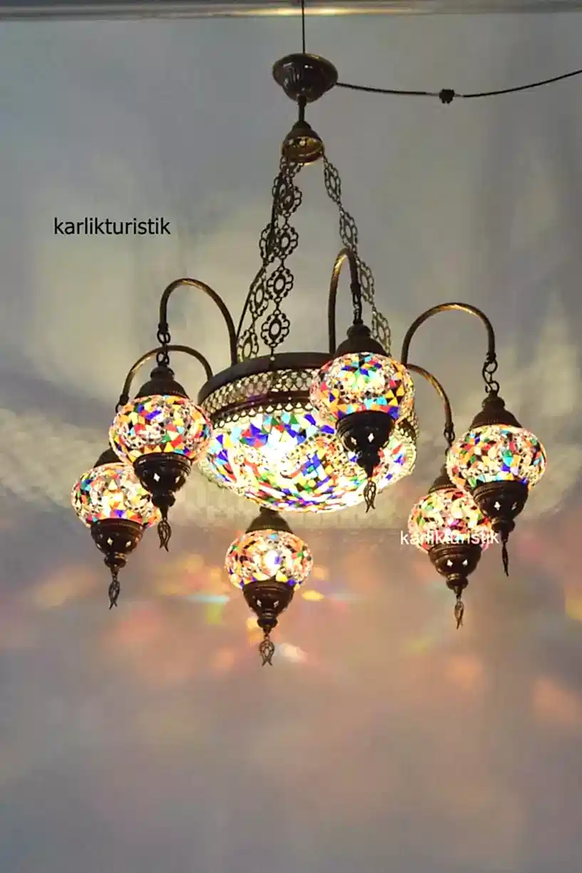 “Mozaik Avize 6 Kollu Sarkıt Rustik Tavan Lambası Renkli Osmanlı Avize I-S-C-5331” için yorum yapan ilk kişi siz olun