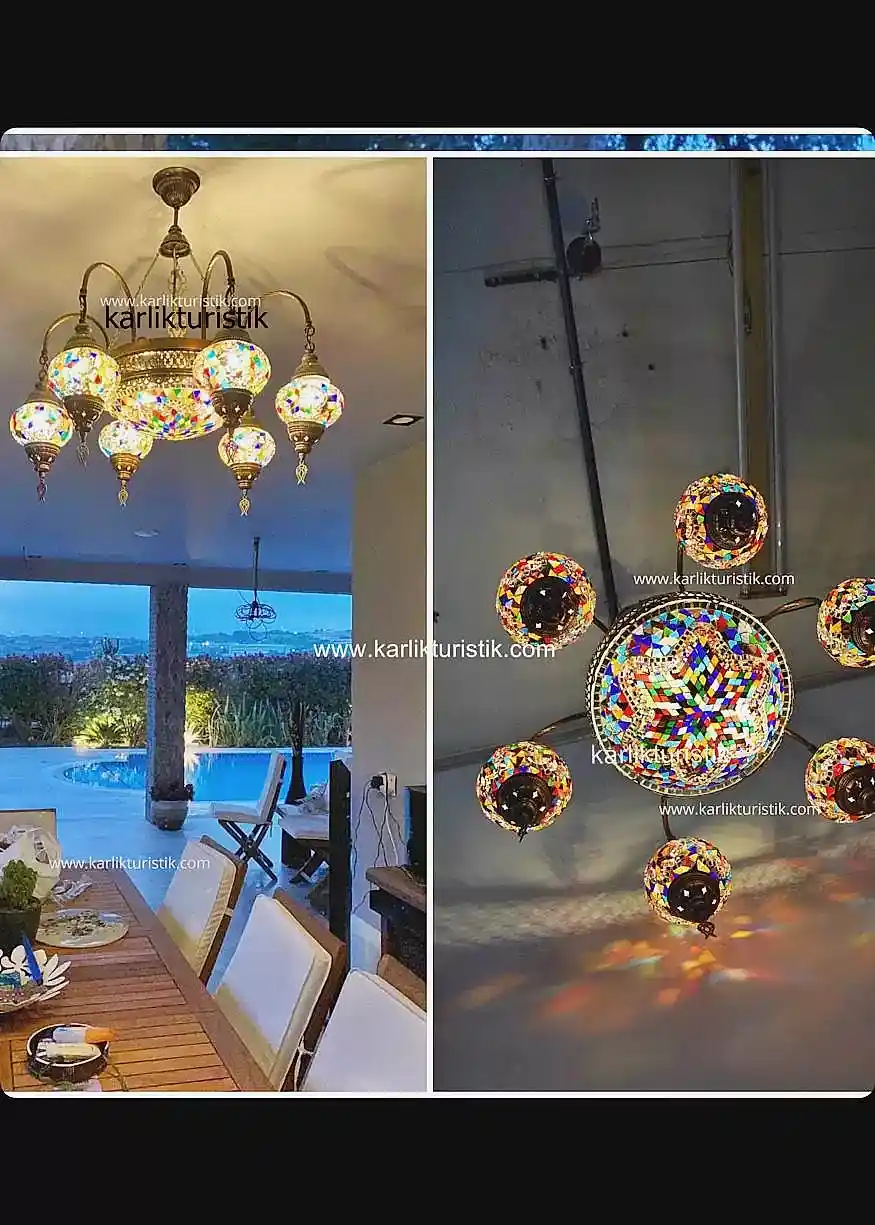 Ürünün apratı metal sıvamadan oluşmaktadır.Aparatına extra vernik atılarak ,daha uzun ömürlü ve daha parlak olmakdadır. Ürünler yollanmadan tektek denenmektedir. Kullanılan kablolar kaliteli Ce sertifikalıdır. Ürün üzerinde Ce sertikalı duy bulunmaktadır. Ürün tamamen türk malıdır. Ürün genişliği yaklaşık 70cm ,yüksekliği yaklaşık 70cm ve ağırlığıda 8 kg gelmektedir..Güvenle kullanabileceğiniz bir üründür. Ürünün cam kısmı orijinal camdır.Bu üründe kullanılan her bir camın çapı 13cm dir.Ortasısında 30 cm yuvarlak mozaik cam bulunmakdadır.Camlar solma yapmaz. Camlar geleneksel olan alçı kullanılarak yapılmıştır. Alçı kullanıldığı içinde cam parçaları düşmez ve cama sıkıca tutunur. Ürün CE standartlarında olup e14 küçük ampülle kullanılabilir.Ürün kuruluma hazır şekilde demonte edilmiştir.Özenle paketlenmiş camları paketinden çıkarıp aparatlarına taktıktan sonra güvenle kulalanabilirsiniz..
