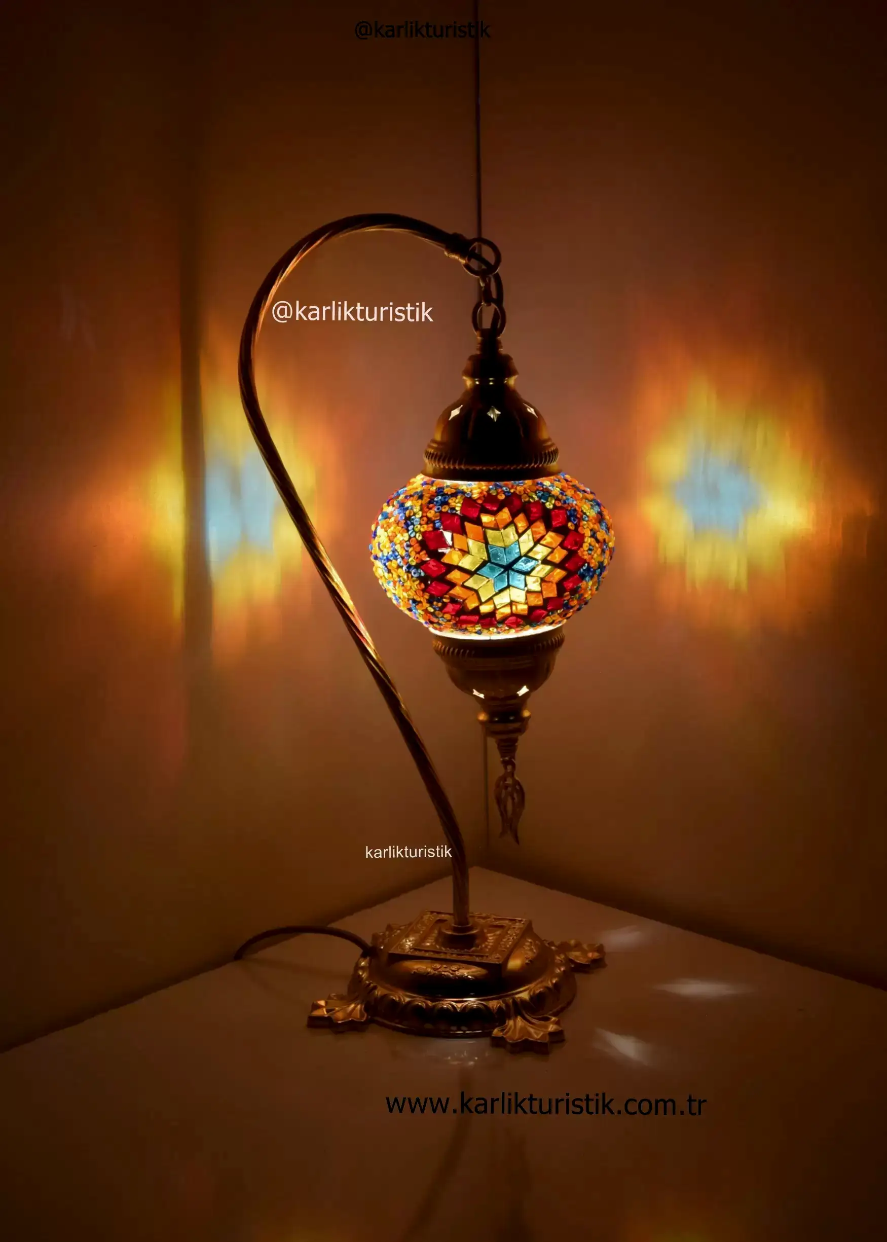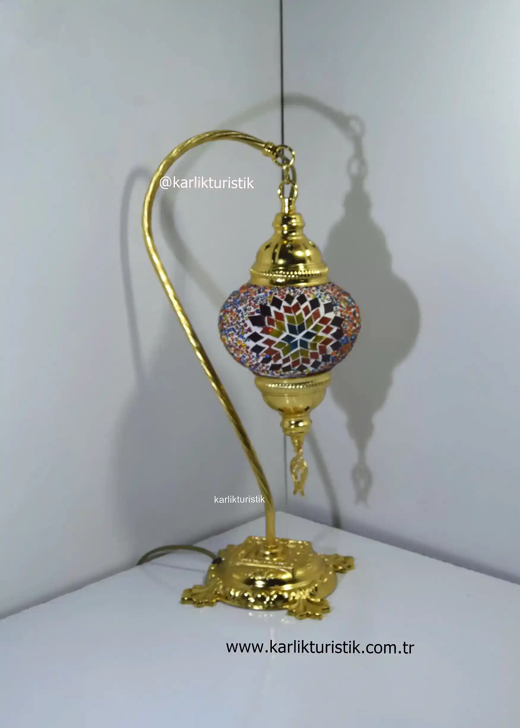 Mozaik Camlı Sıvama Deveboynu,Kuğuboynu,Borulu Dekoratif Lamba. I-S-T 5007 .Ürünün apratı metal sıvamadan oluşmaktadır.Aparatına extra vernik atılarak ,daha uzun ömürlü ve daha parlak olmakdadır. Ürünler yollanmadan tektek denenmektedir. Kullanılan kablolar kaliteli Ce sertifikalıdır. Ürün üzerinde Ce sertikalı duy bulunmaktadır.Ayrıca üründe açma kapama anahtarı ve fiş bulunmakdadır. Ürün tamamen türk malıdır.
