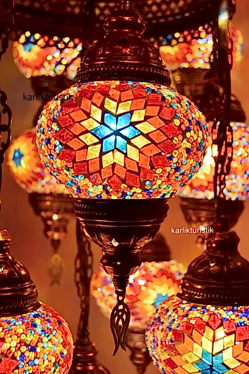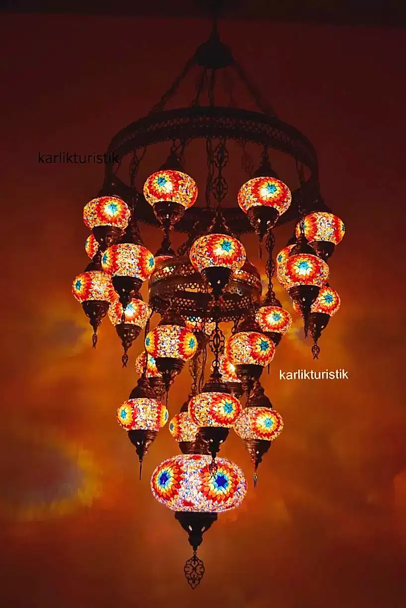 Mozaik Lamba Avize 25 li Sarkıt Otantik Tavan Lambası Renkli Sarkıt I-S-C-5327