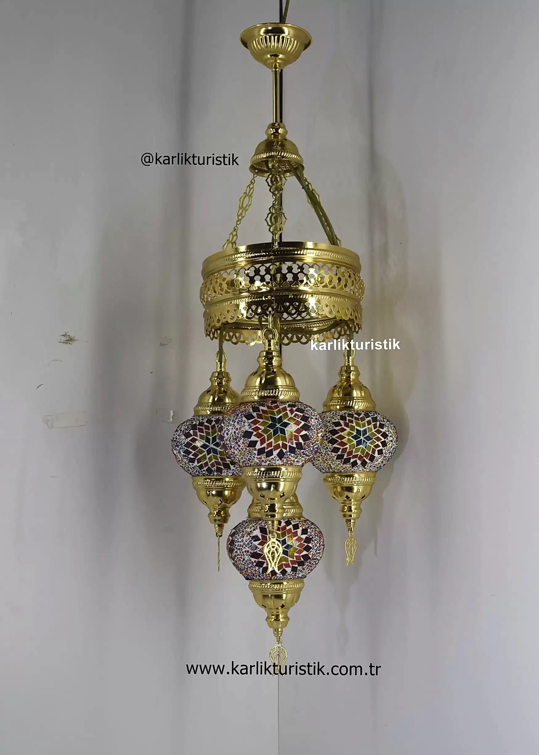 Mozaik Camlı Sıvama 4lü Altın Kaplama Sarkıt Lamba I-S-C 5321 .Ürünün apratı metal sıvamadan oluşmaktadır. Aparatına extra vernik atılarak ,daha uzun ömürlü ve daha parlak olmakdadır. Ürünler yollanmadan tektek denenmektedir. Kullanılan kablolar kaliteli Ce sertifikalıdır. Ürün üzerinde Ce sertikalı duy bulunmaktadır. Ürün tamamen türk malıdır. Ürün genişliği yaklaşık 35cm ,yüksekliği yaklaşık 85cm ve ağırlığıda 3 kg gelmektedir. Güvenle kullanabileceğiniz bir üründür. Ürünün cam kısmı orijinal camdır.Bu üründe kullanılan her bir camın çapı 13cm dir.Bu el işi renkli mozaik camlardan bu avizede 4 adet kullanılmıştır.Camlar solma yapmaz. Camlar geleneksel olan alçı kullanılarak yapılmıştır. Alçı kullanıldığı içinde cam parçaları düşmez ve cama sıkıca tutunur. Ürün CE standartlarında olup e14 küçük ampülle kullanılabilir. Ürün kuruluma hazır şekilde demonte edilmiştir.Özenle paketlenmiş camları paketinden çıkarıp aparatlarına taktıktan sonra güvenle kulalanabilirsiniz.
