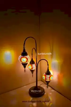 Lambaderler çalışma odası, oturma odası, yemek odası, yatak odası…gibi evinizin çeşitli alanları kullanabileceğiniz aydınlatma ürünleridir. Mozaik lambader, özellikle renkli ve otantik bir görünüm seven ve mekanını ona göre dizayn etmiş kişiler tarafından tercih edilmektedir. Mozaik sanatı ile lambader tasarımının bir araya geldiği mozaik lambader modellerimiz içerisinde aradığınızı bulabilirsiniz. Mozaik tasarımlara asıl değeri veren en önemli özellik ise eski Türk kültür ve sanat değerlerinin işlenmesi ve motiflerin tamamının Eski Türk geleneklerini yansıtmasıdır. El emeği ve sanatın olduğu her şey tabi ki değerlidir. Bu değer nesilden nesile saklanarak kullanılabilir. Karlık Turistik, mozaik lambader modellerinin tamamını el işçiliği ile bu konuda tecrübeli ustalar tarafından yapmaktadır. Bakır telkari ve metal sıvama aparatlar ile ürettiğimiz mozaik lambaderler; oltalı, şamdan ya da silindir şeklinde ve farklı lamba sayısıyla tasarlanmaktadır.