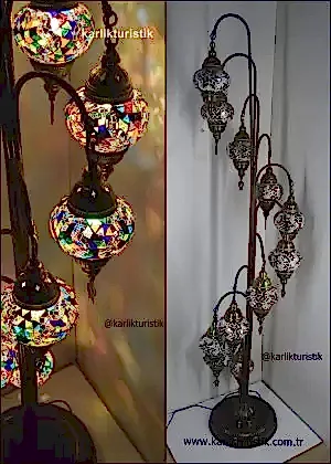 Lambader Çoklu Elişi Sarkıt Camlı, Mozaik Ayaklı Lambader, Dekoratif Köşe Lambası I-S-F-5506