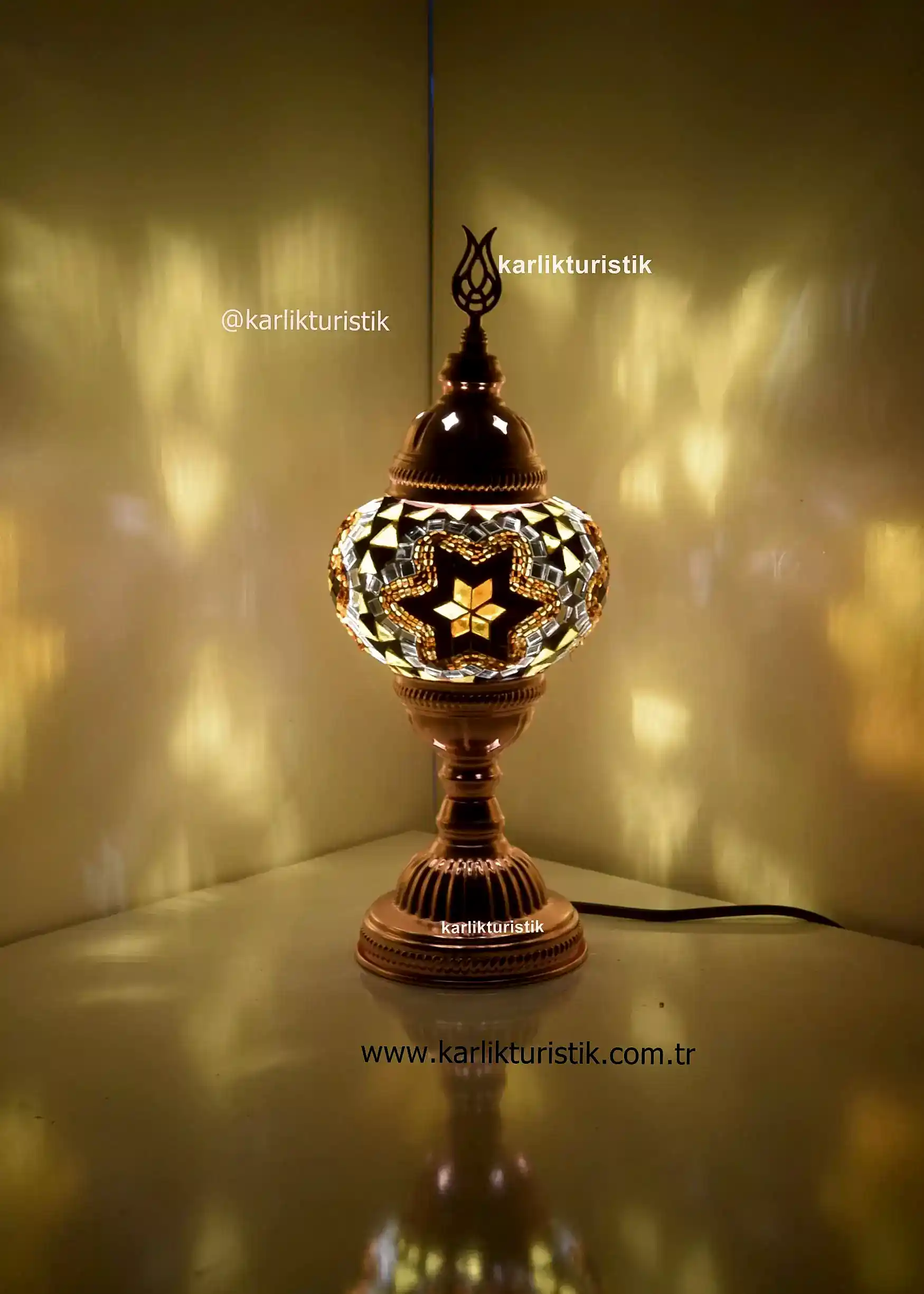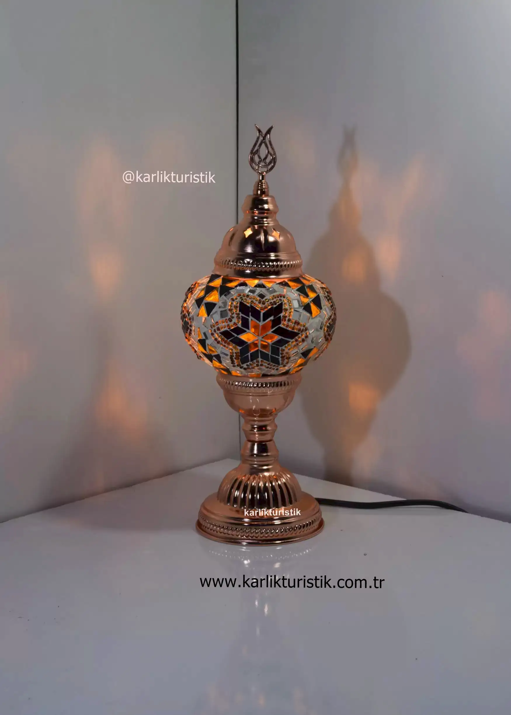 Mozaik Masa Lambası Abajur Bakır Kaplama Renkli , Türk El Yapımı Lamba, Özel, Eşsiz, Türk lambaları
