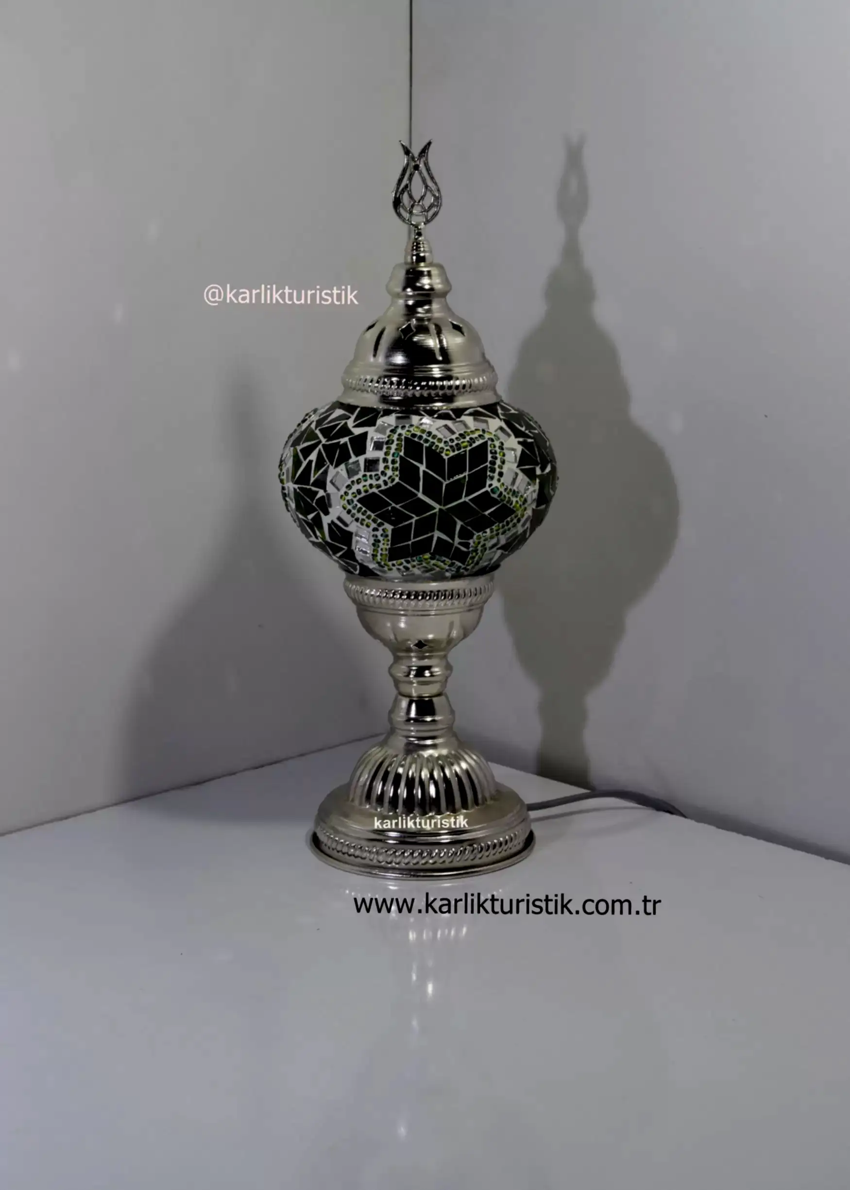 Mozaik Masa Lambası Abajur Gümüş Kaplama Renkli , Türk El Yapımı Lamba, Özel, Eşsiz, Türk lambaları