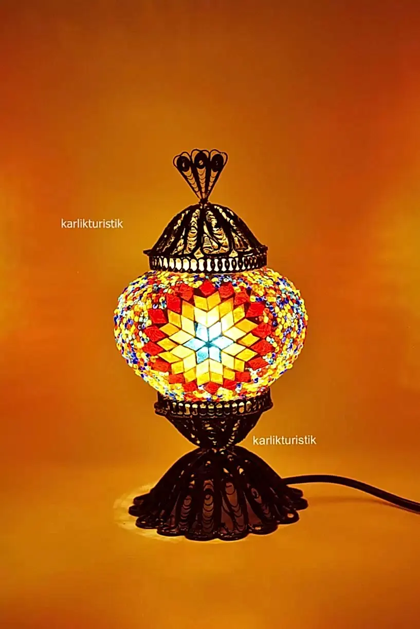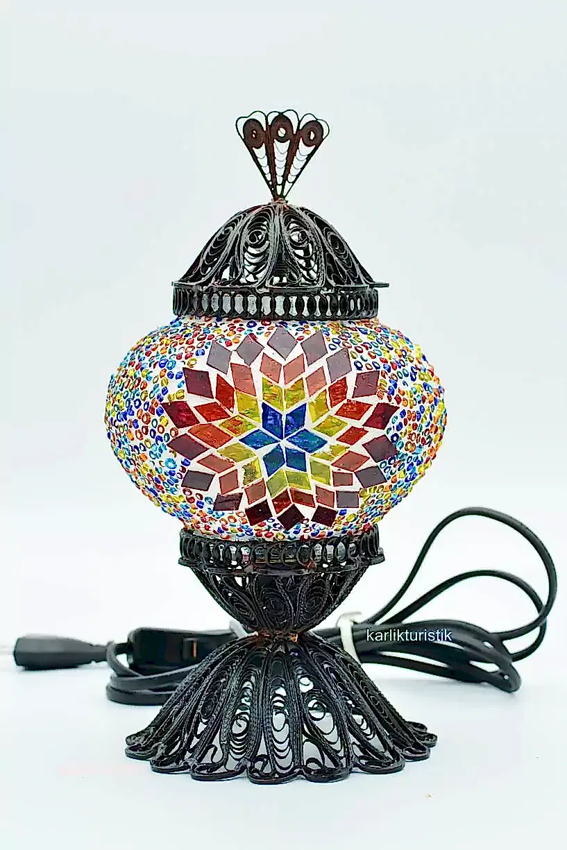 Mozaik Masa Lambası Bakır Telkari No:2 Boy – F-T-201