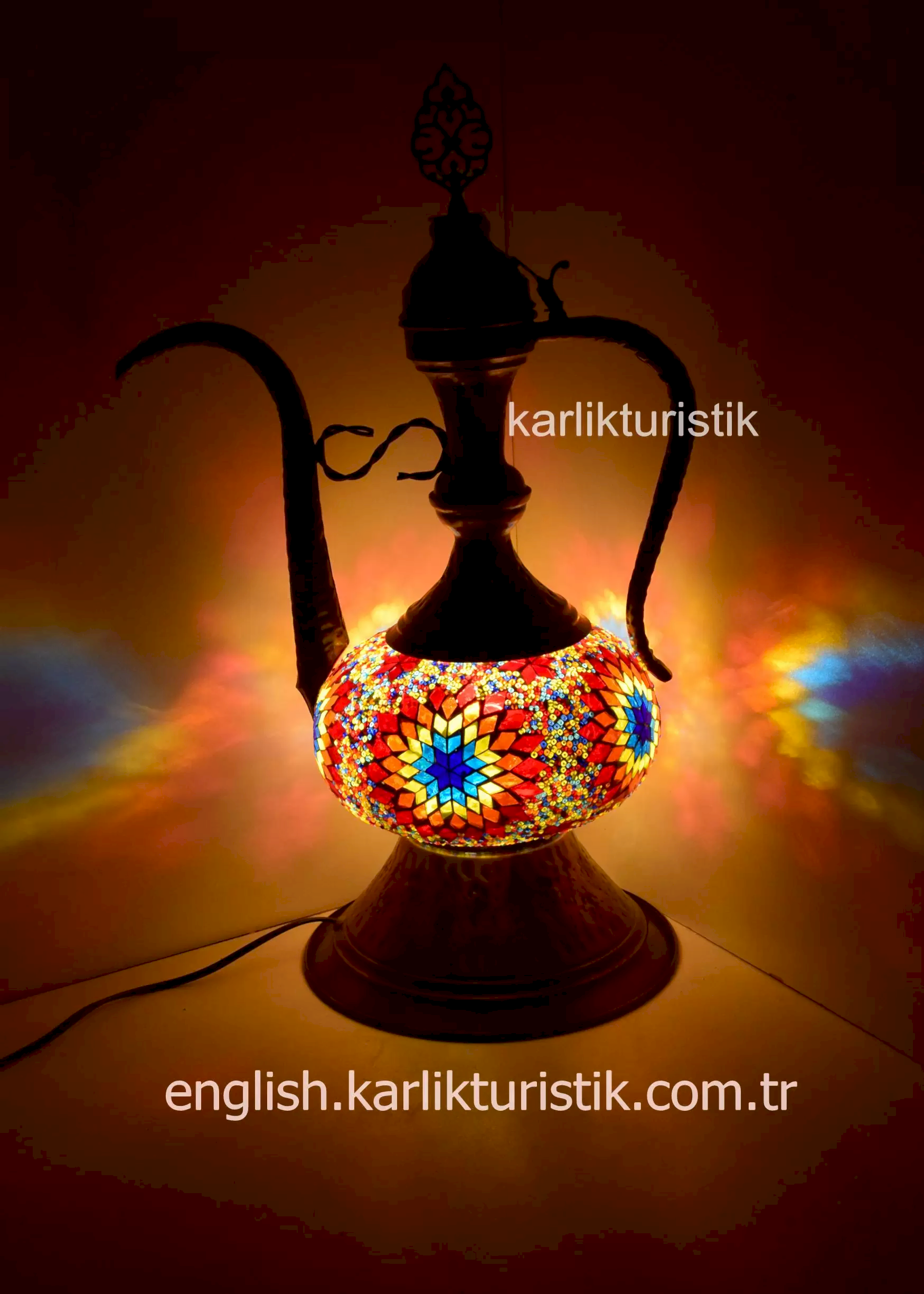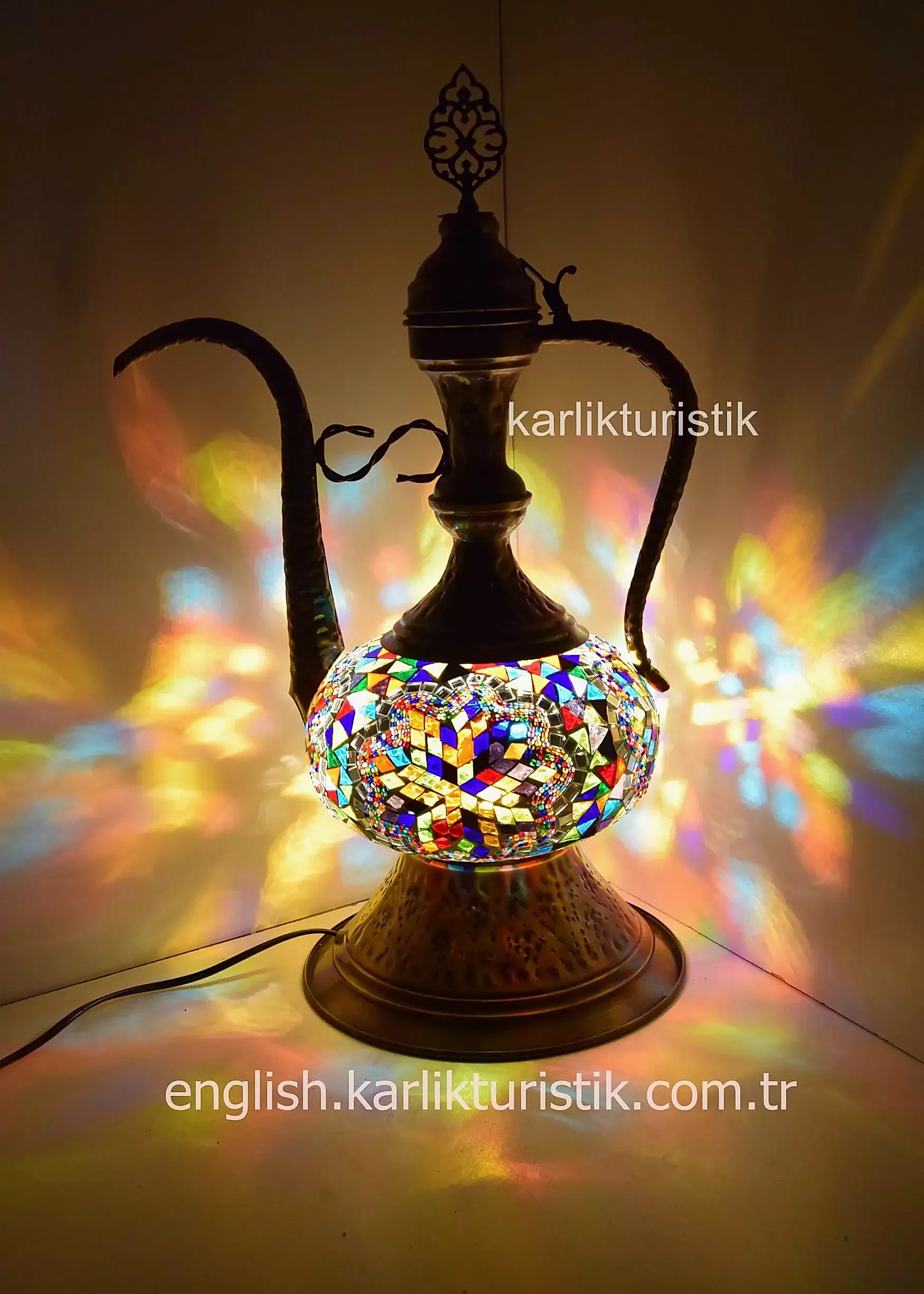 - Mozaik Masa Lambası Dekoratif Dövme İBRİK Şekli Abajur Hediye için Otantik Masaüstü Aydınlatma Malzemeler: Cam, metal
