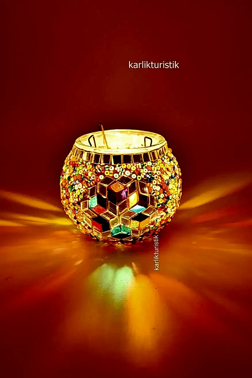 Özelleştirilmiş El Yapımı Çok Renkli Mozaik Mumluk