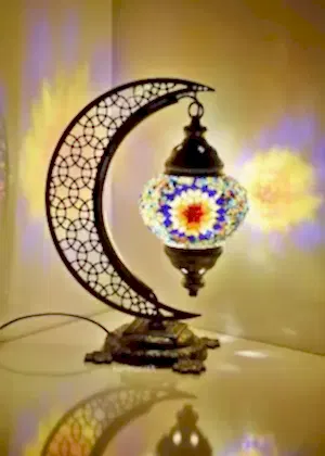 Bu ürün, muhtemelen bir masa veya ayaklı lamba olan silindirik formda çarpıcı bir Türk mozaik lambasını sergiliyor. Karmaşık cam işçiliği, merkezde bir yıldız patlaması motifi oluşturan kaleydoskop benzeri geometrik bir desende düzenlenmiş canlı bir renk dizisi sergiliyor. Lambanın yaydığı sıcak, çok renkli parıltı, yumuşak, ortam aydınlatma efekti yaratarak onu lobi, kafe veya ev gibi rahat alanlar için ideal bir dekoratif parça haline getiriyor. Geleneksel işçilik, Türk aydınlatma tasarımının zengin kültürel mirasını yansıtırken, tabandaki ve üstteki ayrıntılı metal işçiliği zarafetini artırıyor. Bu mozaik lamba, el yapımı dekoru takdir eden ve çevrelerine egzotik bir güzellik dokunuşu katmak isteyenler için mükemmeldir.