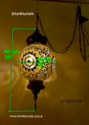 Türk Tavan Lambası,Mozaik Vitray 50cm derinlik Lambası,Otel Lambaları,Türk Tekli Askılı Lamba,