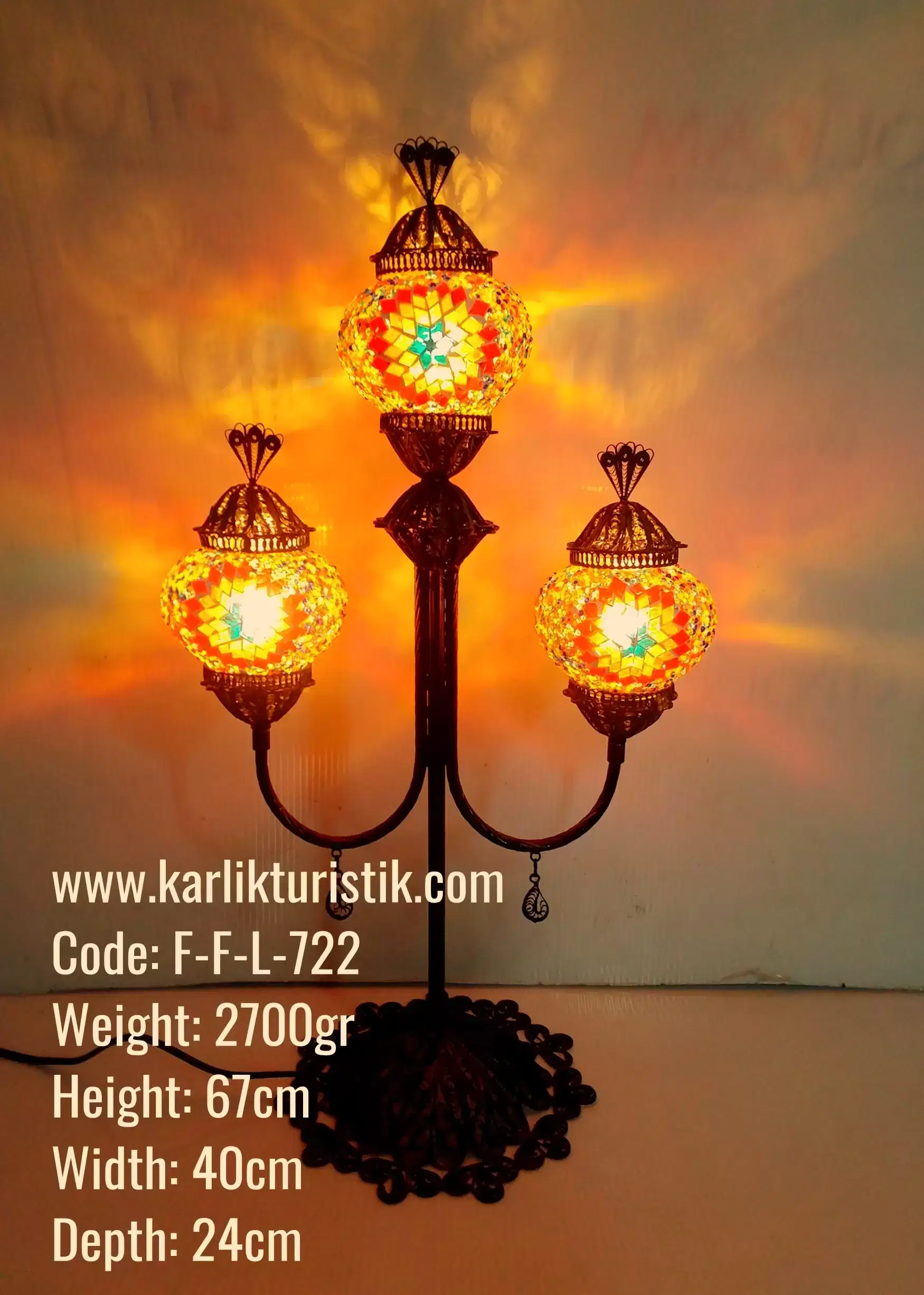Mozaik Lamba Bakır Telkari 3 lü Şamdan Lambader – F-F-L-722