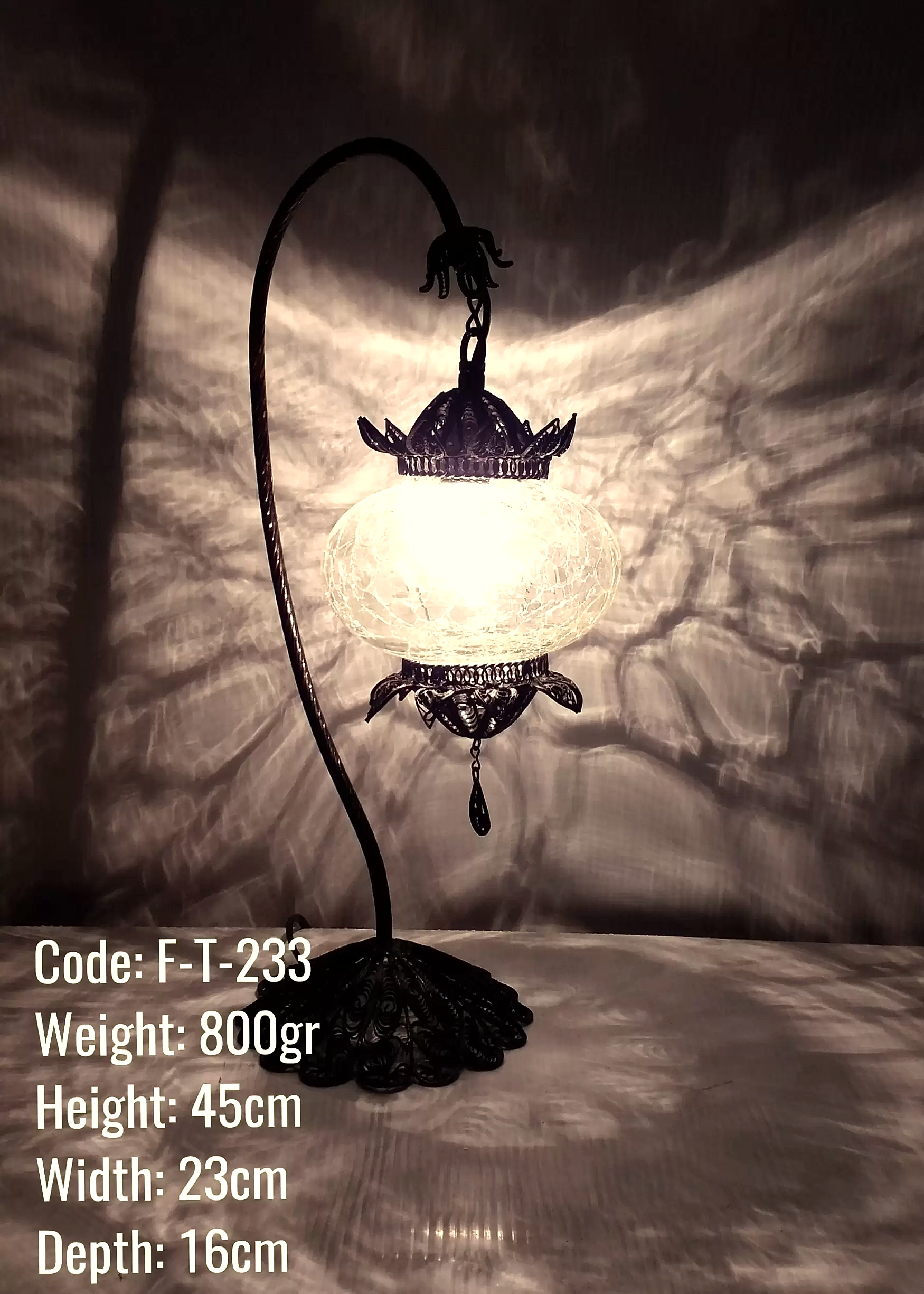 No3 Şefaf Çatlatılmış Cam Bakır El Emeği Telkari Taçlı Olta MasaLambasi – F-T-233