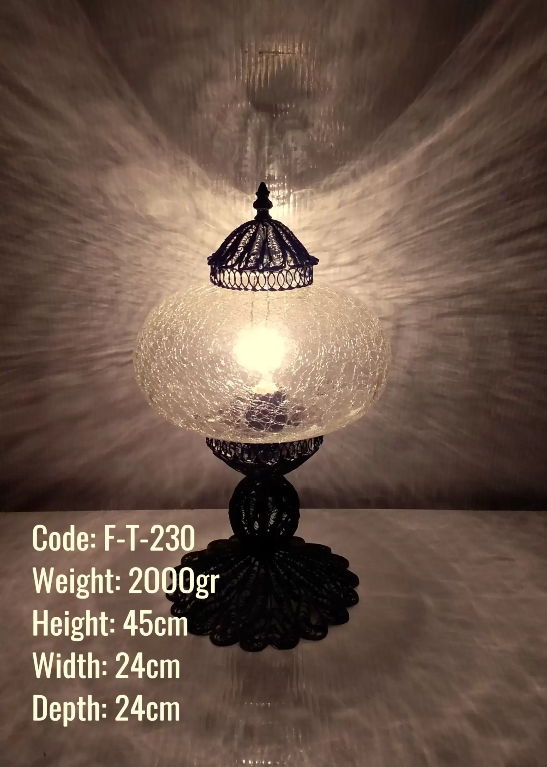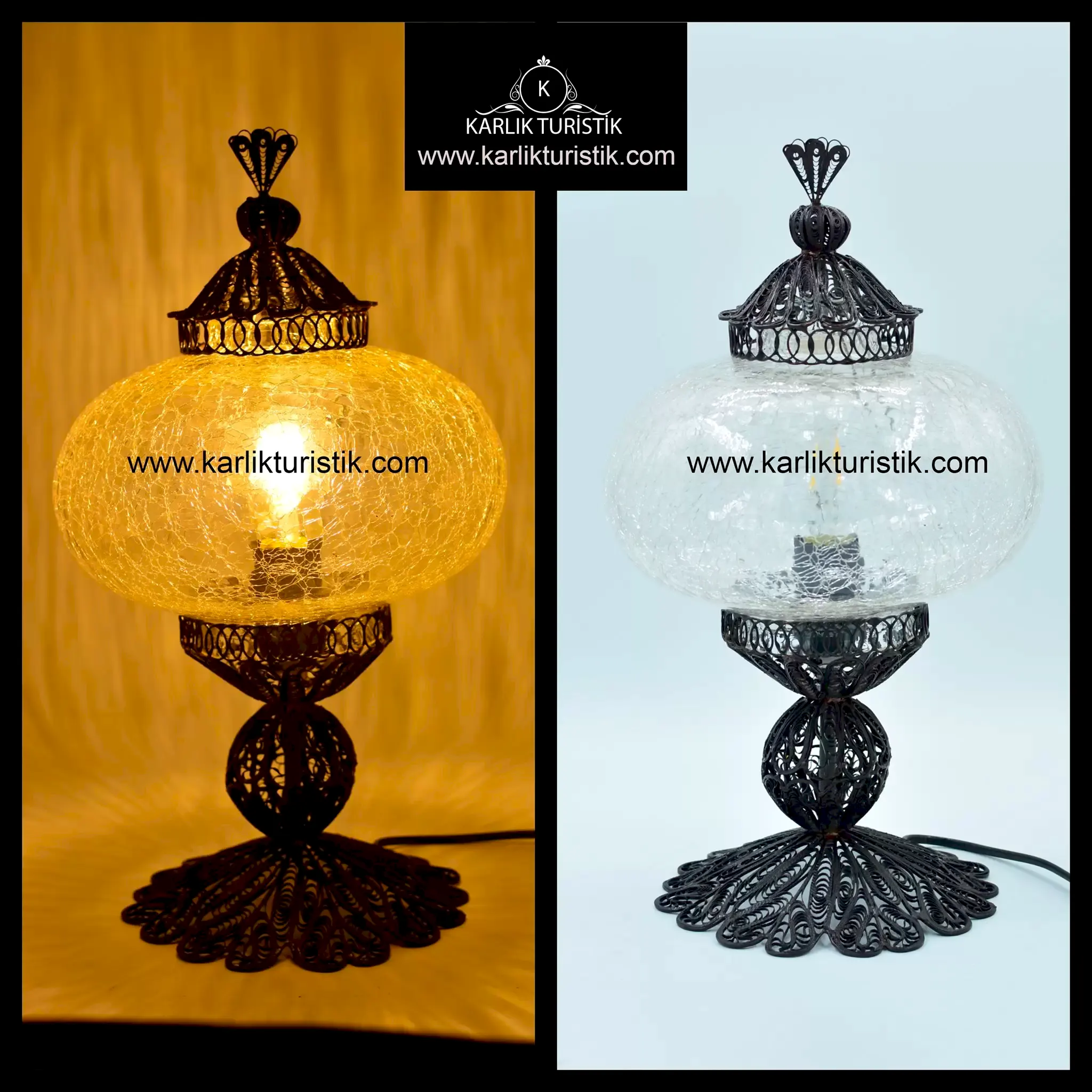 No5 Şefaf Çatlatılmış Cam Bakır El Emeği Telkari Masa Lambasi – F-T-230