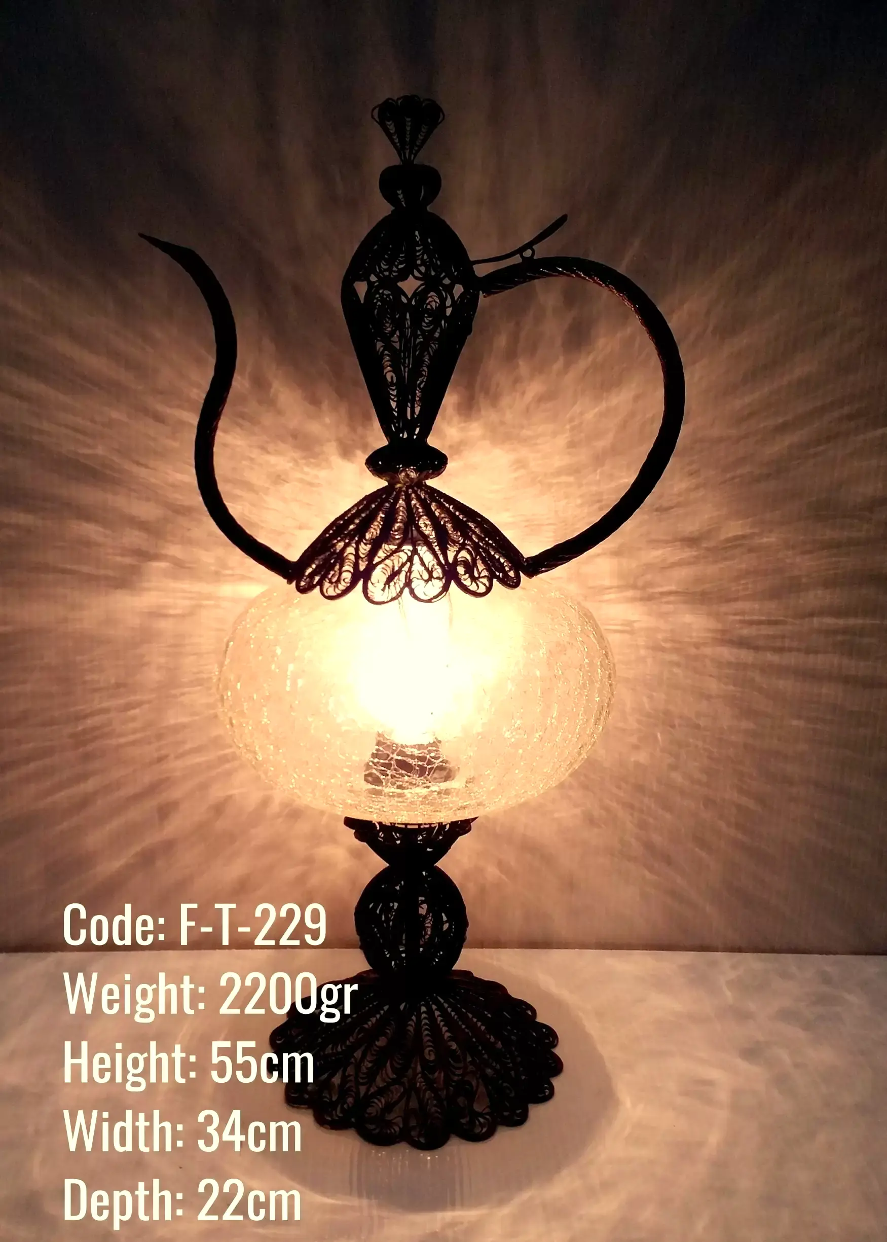 Orta Ufo Şefaf Çatlatılmış Cam Bakır El Emeği Telkari İbrik – F-T-229