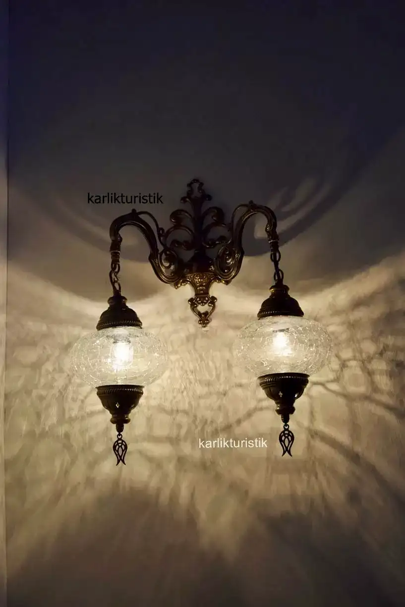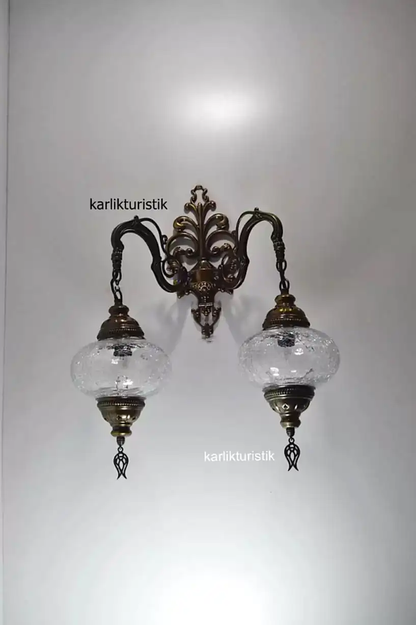 Osmanlı Aplik,çiftli Aşağı Yönlü Dekoratif Duvar Lambası,otantik Lamba,şefaf Çatak Camlı ISW5408NO3 ŞEFAF APLİK
