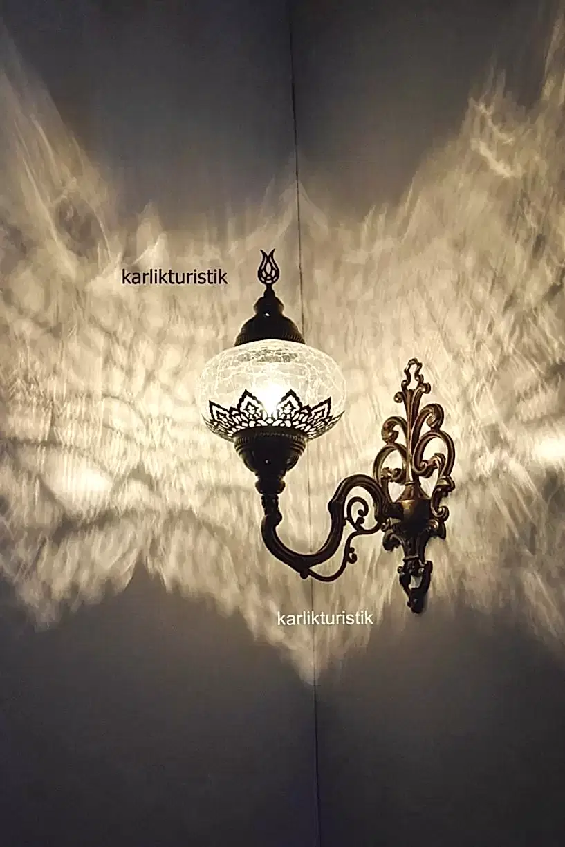Osmanlı Çatlama Desen Şefaf Camlı Sıvama Tekli Duvar Apliği Yukarı Yönlü LAZERLİ I-S-W 5407 .Ürünün apratı metal sıvamadan oluşmaktadır.Aparatına extra vernik atılarak ,daha uzun ömürlü ve daha parlak olmakdadır. Ürünler yollanmadan tektek denenmektedir. Kullanılan kablolar kaliteli Ce sertifikalıdır. Ürün üzerinde Ce sertikalı duy bulunmaktadır. Ürün tamamen türk malıdır. El yapımı Malzemeler: cam, metal Yükseklik: 55 santimetre Genişlik: 16 santimetre Derinlik: 26 santimetre. Güvenle kullanabileceğiniz bir üründür. Ürünün cam kısmı orijinal camdır.Çatlak gibi durur ama gerçekde çatlak değildir.Bu üründe kullanılan camın çapı 16cm dir. Ürün CE standartlarında olup e14 küçük ampülle kullanılabilir. Kırılmıycak vaziyette tektek paketlemekdeyiz. İyi günlerde kullanın.