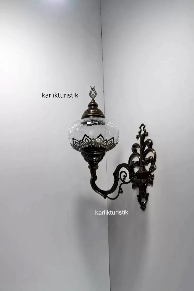 Osmanlı Aplik,tekli Yukarı Yönlü Dekoratif Duvar Lambası,otantik Lamba,şefaf Çatak Camlı ISW5407NO3 ŞEFAF APLİK LAZERLİ