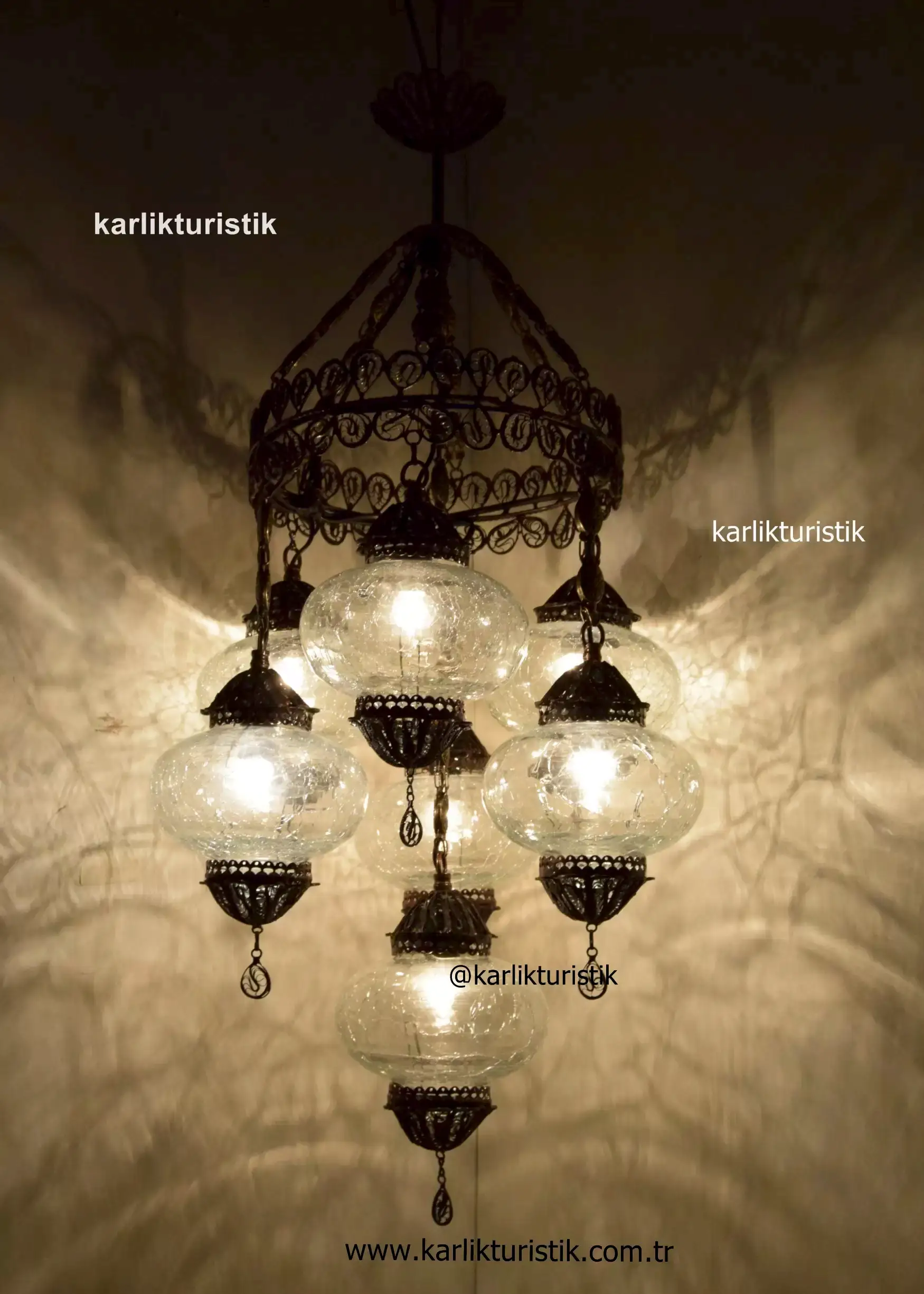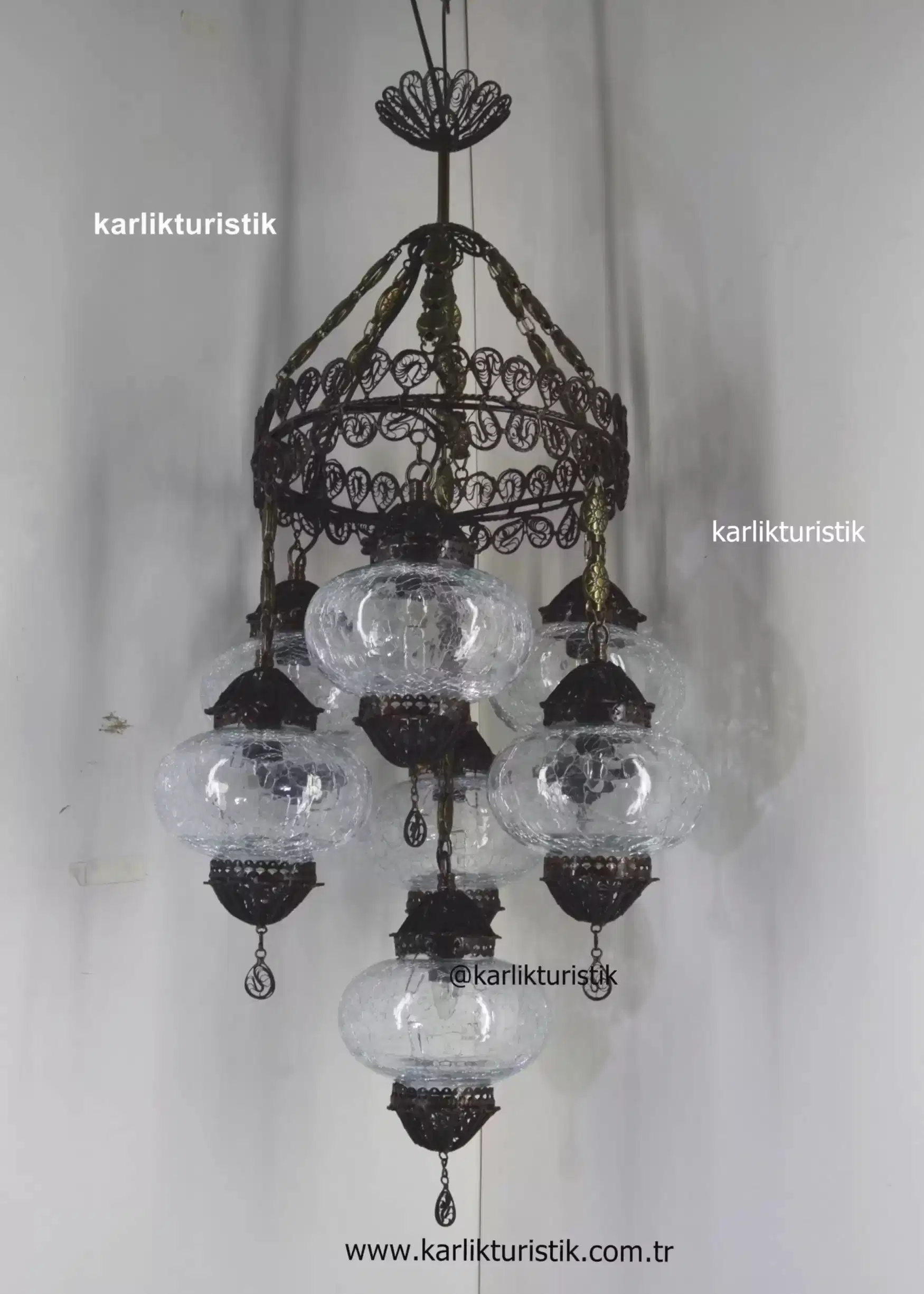 Osmanlı avize Modelleri,Türk Lambası Avize,Çatlak Cam Lamba Askısı,Moraccon Lamba,El Yapımı Telkari sanatı Bakır Malzeme 7 li Avize
