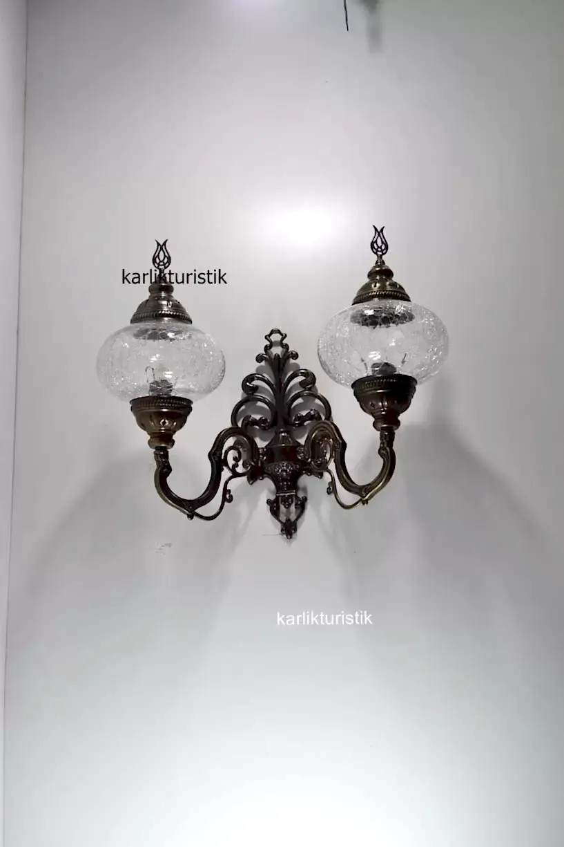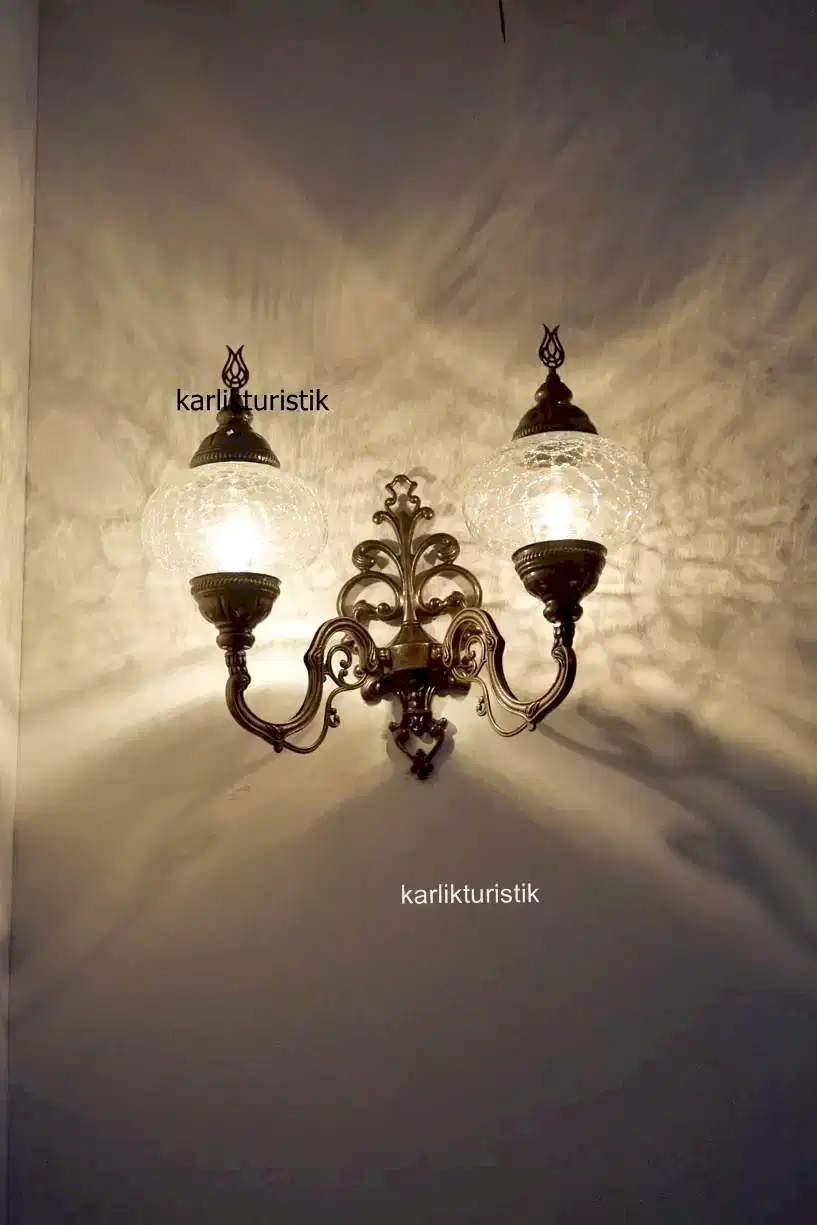 Osmanlı çatlama desen şefaf camlı sıvama çiftli duvar apliği yukarı yönlü