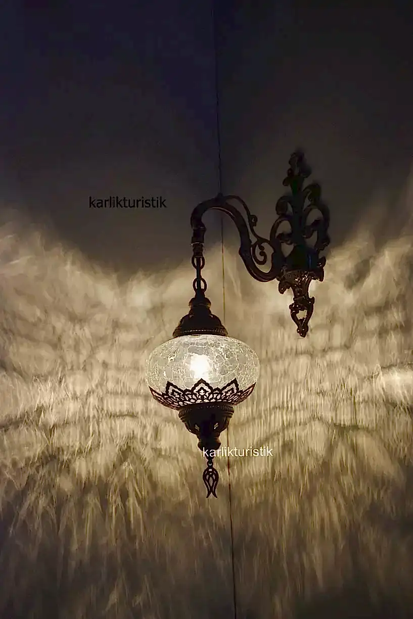 Osmanlı çatlama desen şefaf camlı sıvama tekli duvar apliği aşşağı yönlü ı-S-W 5402 Lazerli