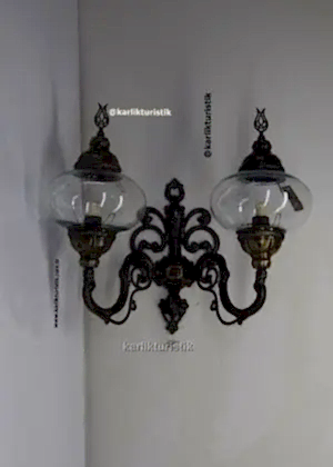 Osmanlı çatlama desen şefaf camlı sıvama çiftli duvar apliği yukarı yönlü