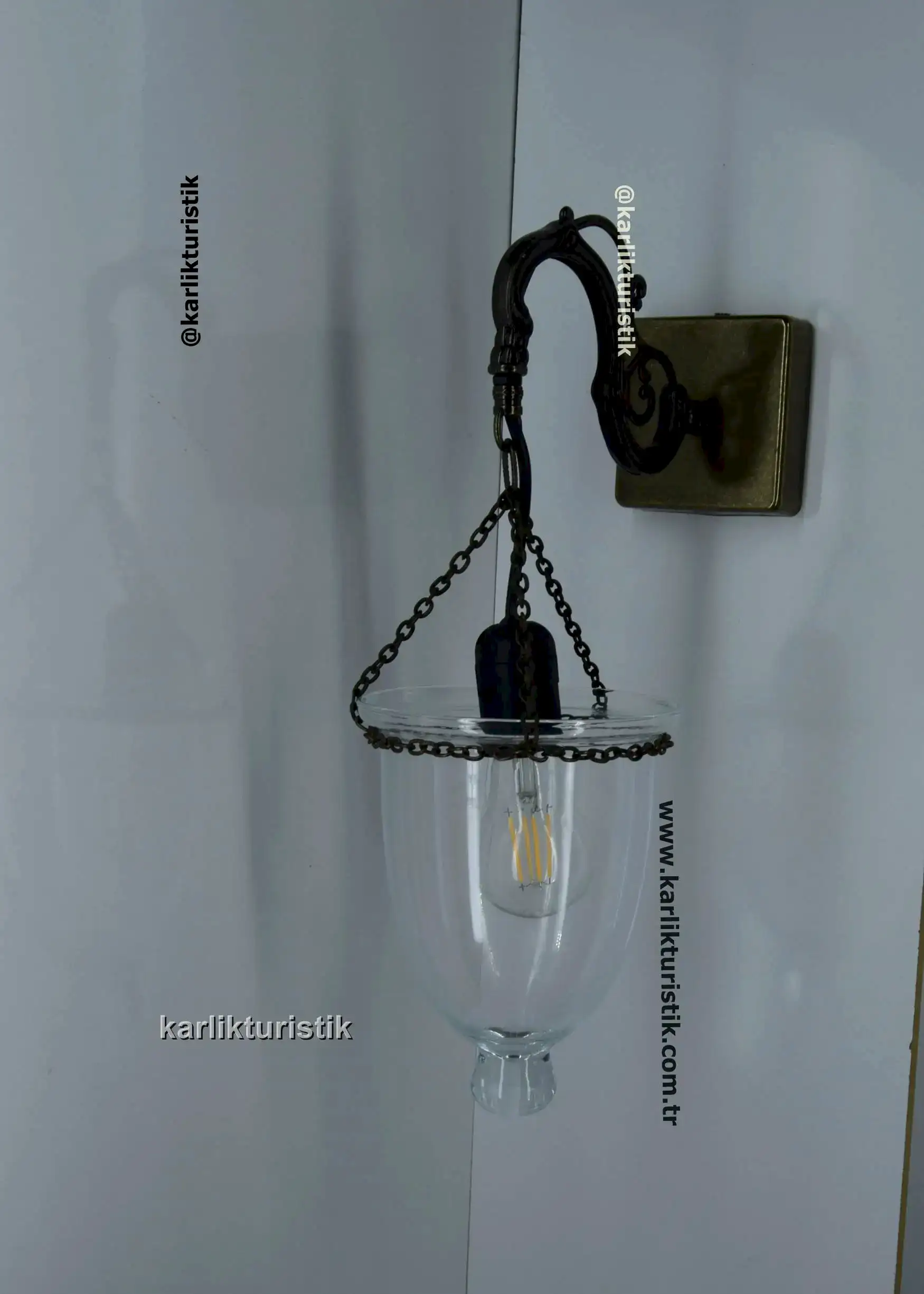 Geleneksel cami kandillerinden ilham alınarak tasarlanan bu estetik duvar apliği, zarafeti ve maneviyatı mekanlarınıza taşıyor. Karlık Turistik tarafından yüksek zanaatkarlıkla üretilen bu model; ibadethanelerden otantik kafelere kadar geniş bir yelpazede huzurlu bir aydınlatma sağlar.
