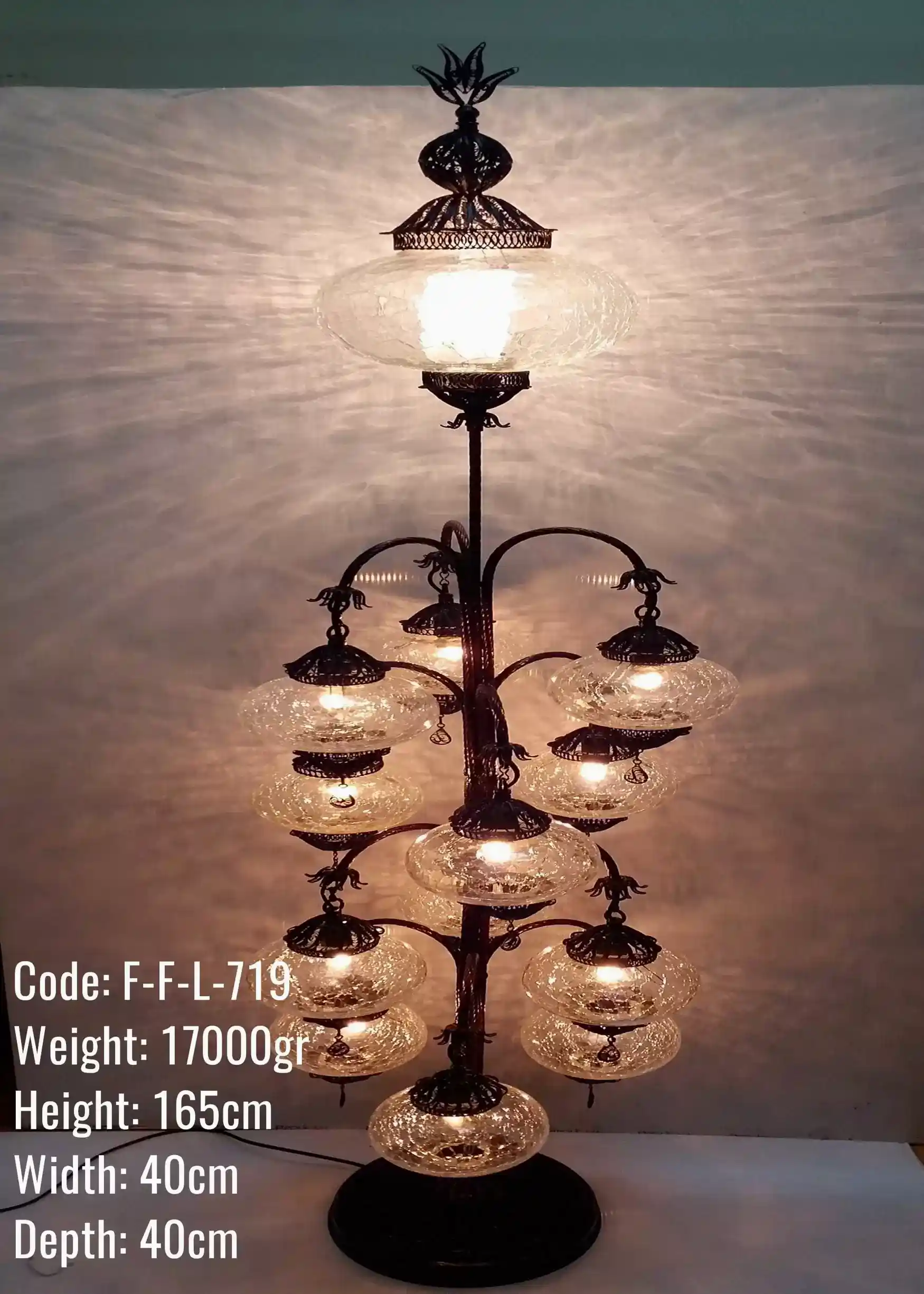 Otantik Telkari 13 lü No3 Şeffaf Çatlak Cam Oltalı Lambader – F-F-L-719