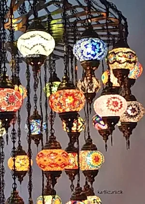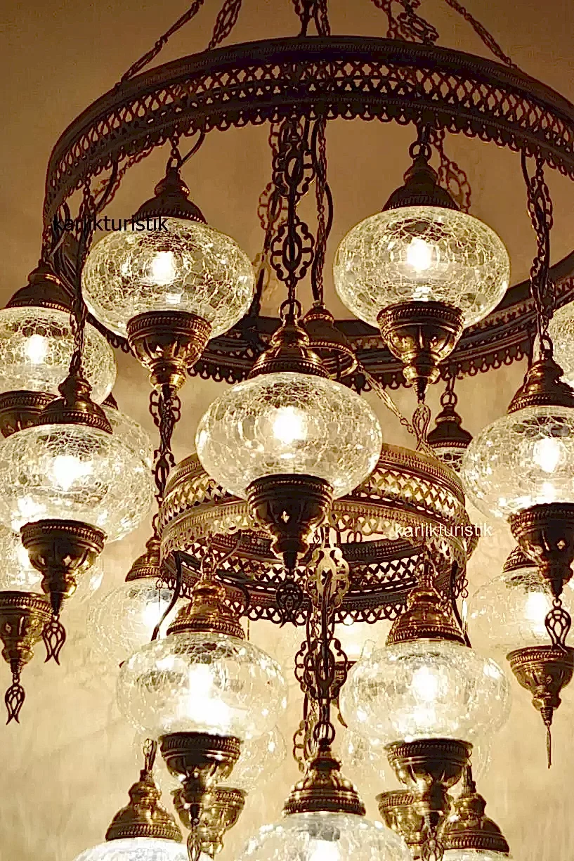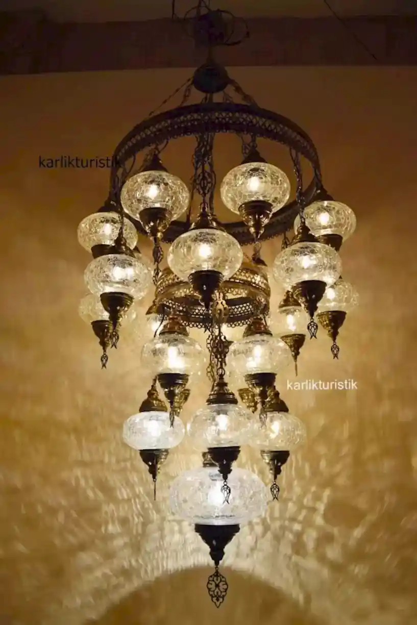 Osmanlı Lamba Avize 25 li Sarkıt Otantik Tavan Lambası Şeffaf Sarkıt