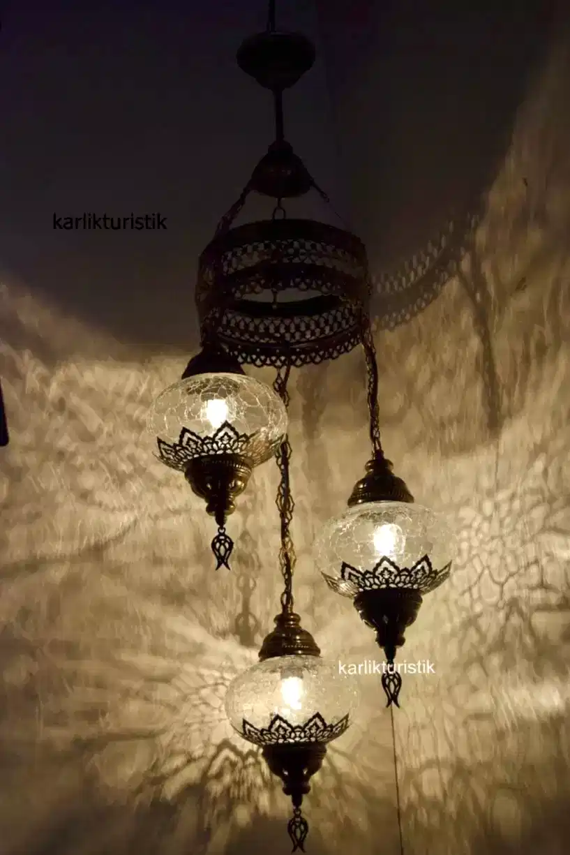 “Osmanlı Lamba Avize 3lü Sarkıt Dekoratif Aydınlatma Tavan Lambası Şefaf Çatak Lazerli” için yorum yapan ilk kişi siz olun