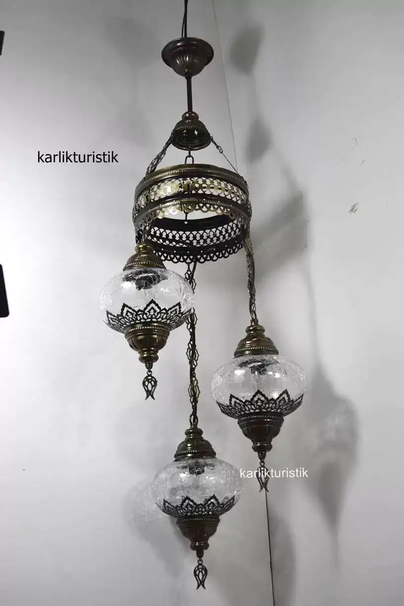 Osmanlı Lamba Avize 3lü Sarkıt Dekoratif Aydınlatma Tavan Lambası Şefaf Çatak Lazerli ISC5301 SARKIT 3LÜ ŞEFAF NO3 SET