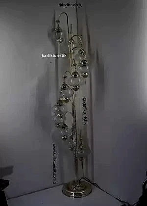 Lambader Şeffaf Cam Çatlatma Desen, Otantik Ayaklı Lamba 10 camlı, Osmanlı Tarzı Lambader Gümüş Kaplama Özel Seri
