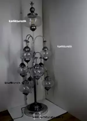 Türk Lambası Ayaklı 11 Küre Bakır Telkari Gümüş Kaplama Osmanlı Kırık Camlı, Türk Lambası Kırık Desenli,Türk Lambası Şeffaf Cam